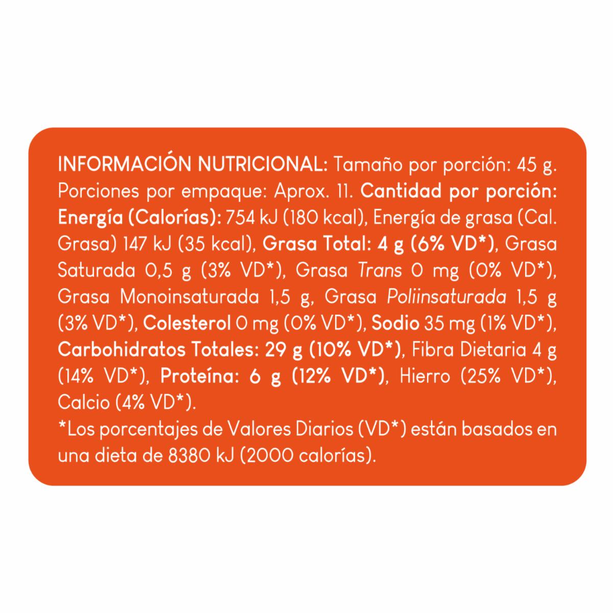 Elaborada con avena en hojuelas, alto en fibra
