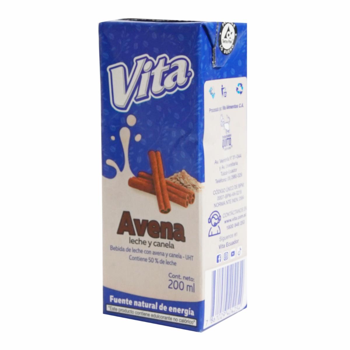 - Descubre la indulgencia y los beneficios nutricionales de la Avena Líquida de Leche y Canela VITA. Deléitate con esta bebida reconfortante que combina lo mejor de la avena con la cremosidad de la leche y el toque cálido de la canela