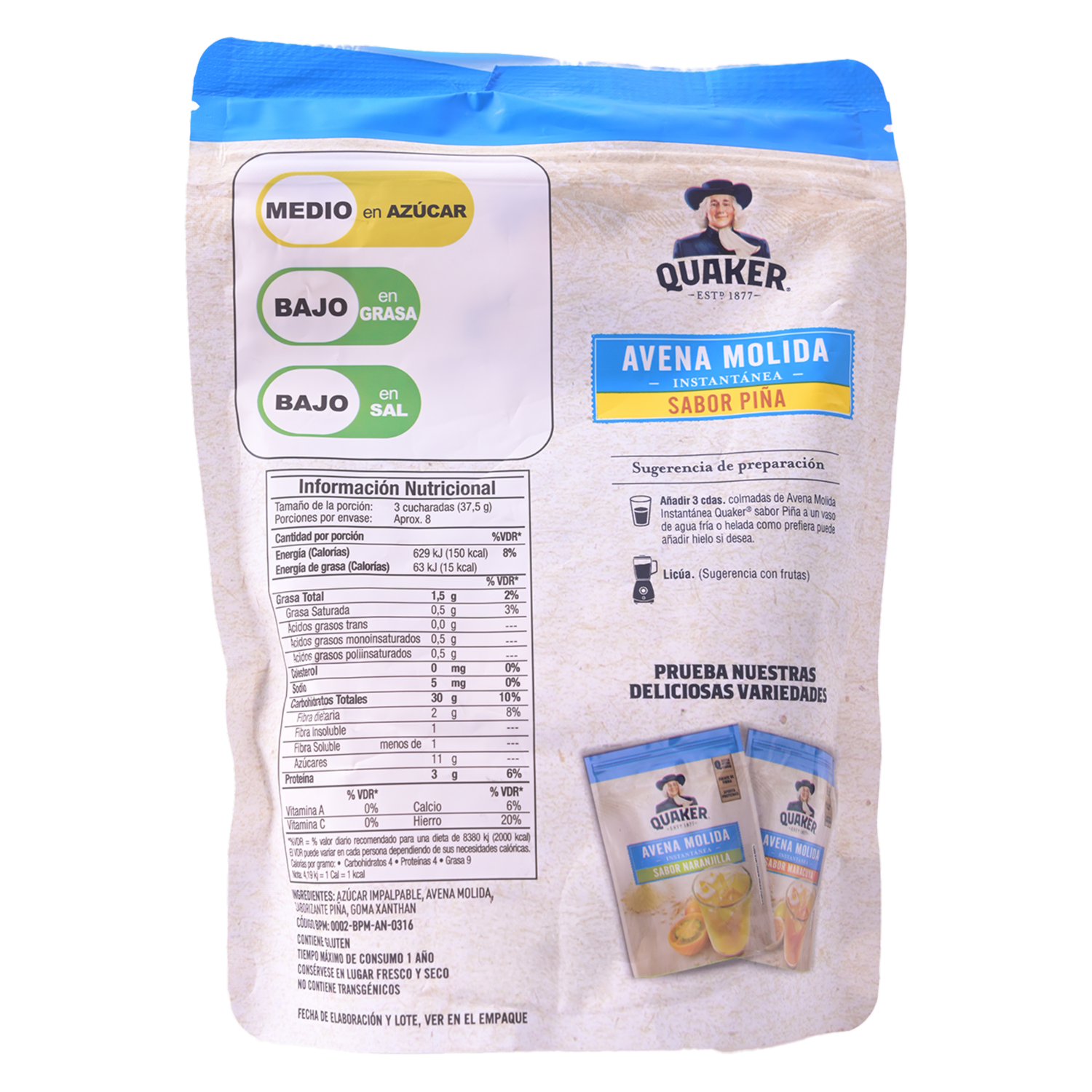 Avena Molida De Piña QUAKER 300 G – QUAKER. Disponible en nuestros locales. Precio y stock pueden variar según la tienda.