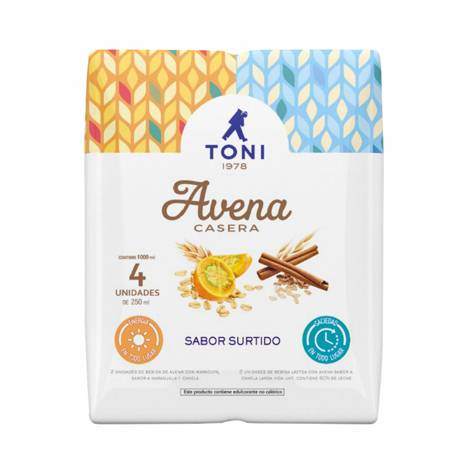 consultando preciosAvena Surtida TONI 4 x 250 ml – TONI. Disponible en nuestros locales. Precio y stock pueden variar según la tienda.