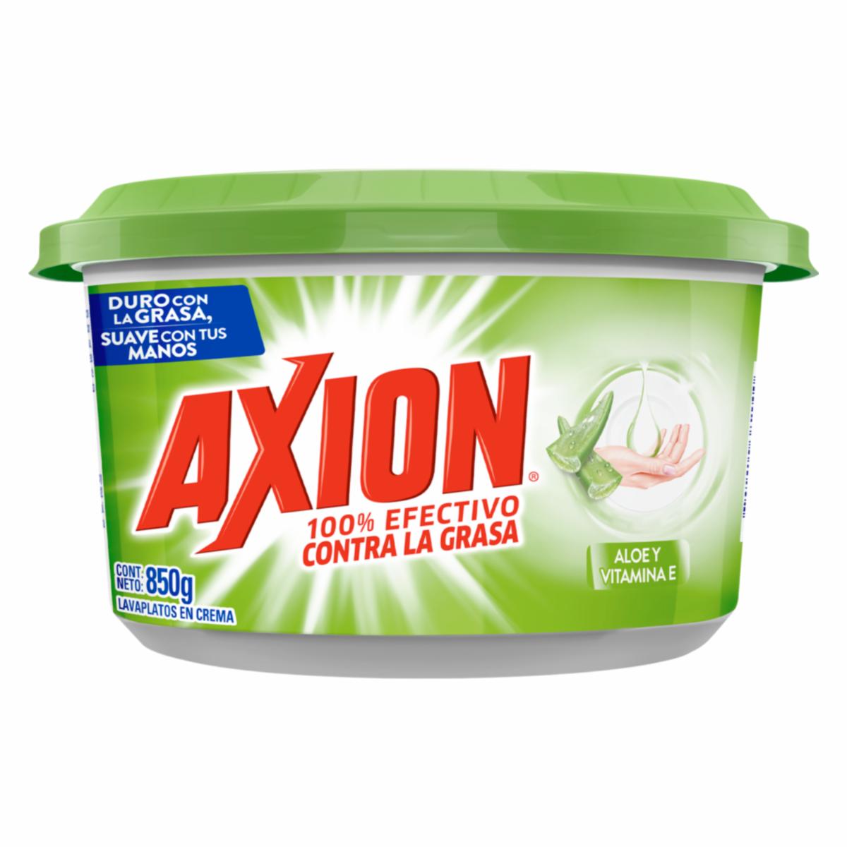 • La presentación con de 850g del Lavaplatos Axion en crema, te permitirán dejar relucientes una gran cantidad de platos, vasos, sartenes, cucharas, cacerolas, entre otros trastes sin hacer mucho esfuerzo
