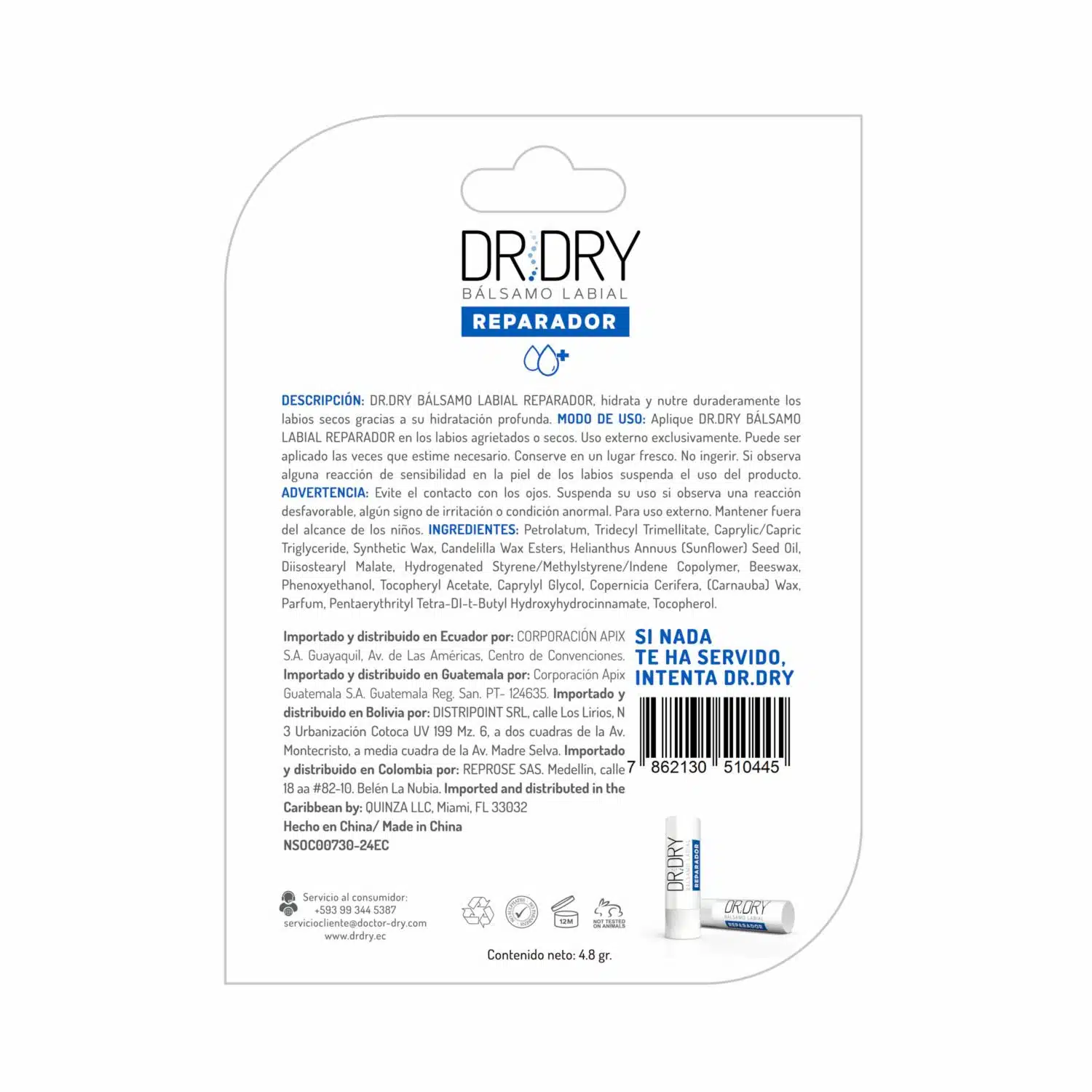 Bálsamo Labial Reparador Hidratante DR.DRY 4.80 G – DR. DRY. Disponible en nuestros locales. Precio y stock pueden variar según la tienda.
