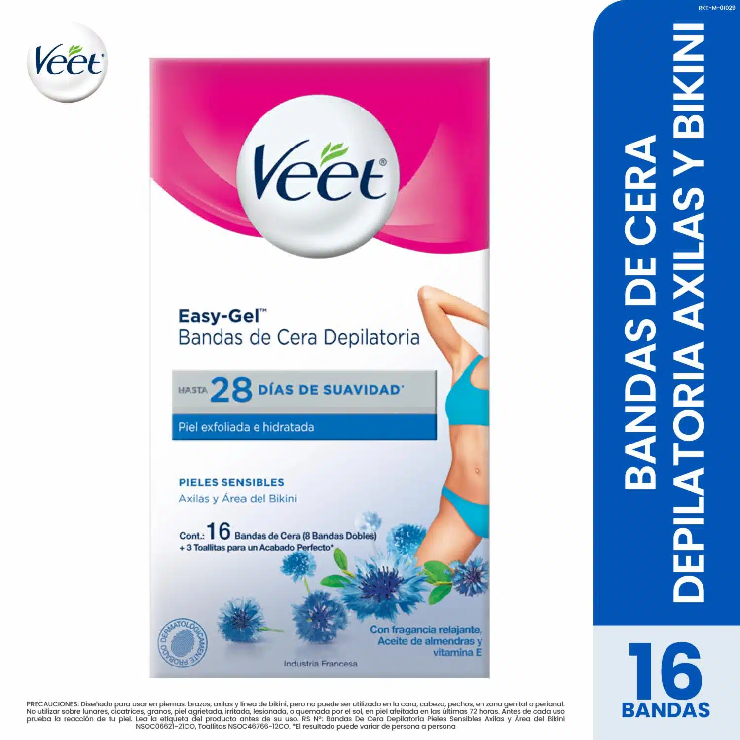 Bandas Depiladoras De Cera Fría Bikini Y Axilas VEET 16 Uds – VEET. Disponible en nuestros locales. Precio y stock pueden variar según la tienda.