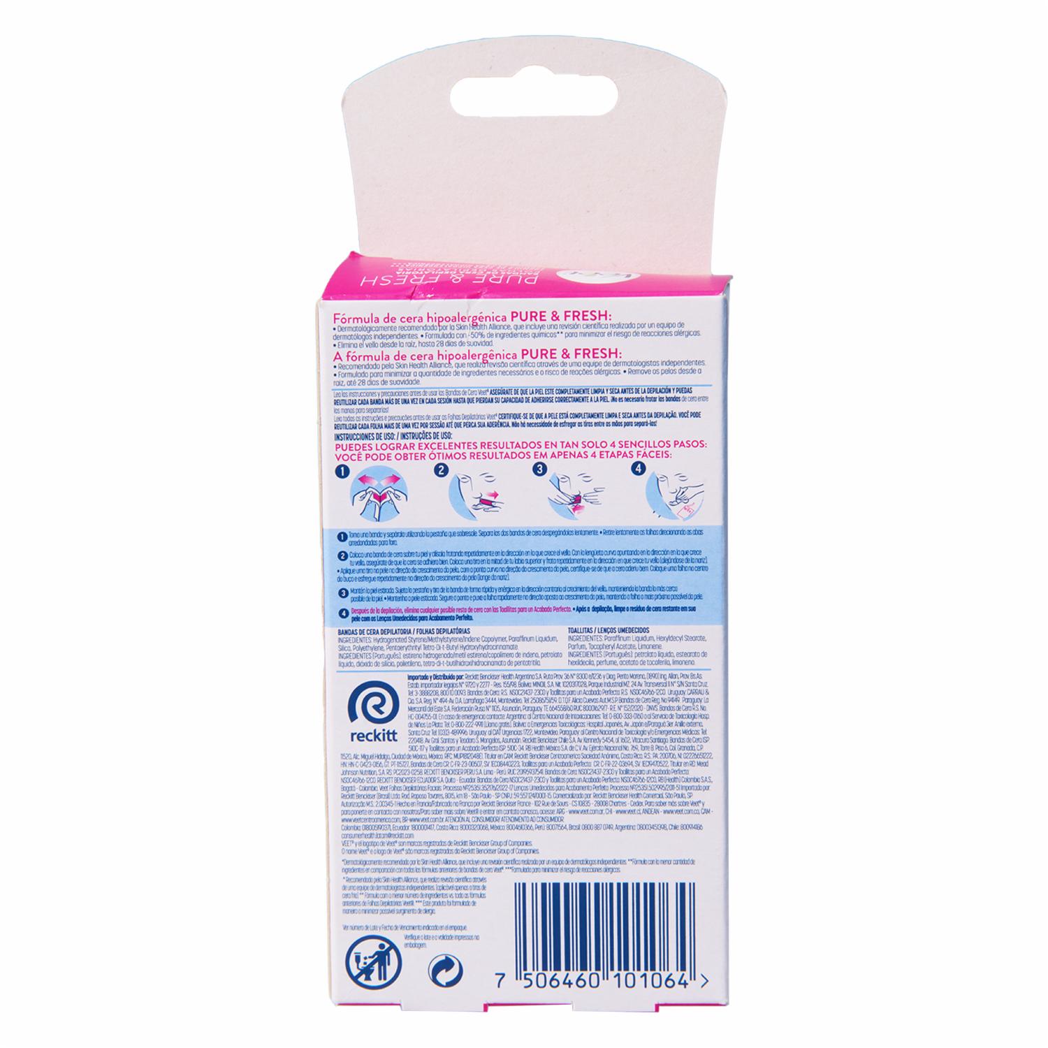 - Características - Especial para piel sensible - Depilación desde la raíz - Fórmula con ingredientes calmantes - Uso rápido y práctico Incluye - 16 bandas depiladoras faciales