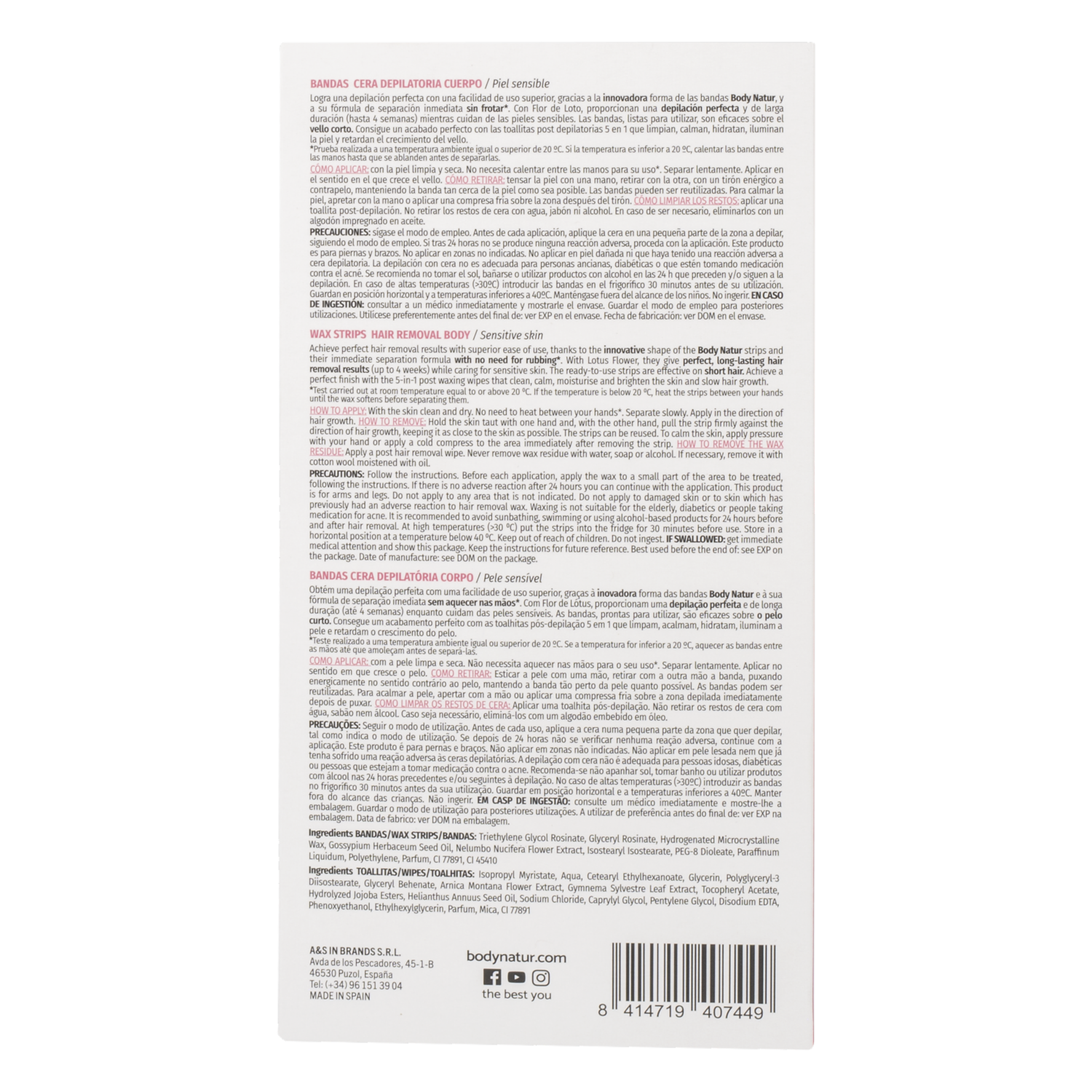 Bandas Depilatorias Con Flor De Loto Pack BODY NATUR X 40 Uds