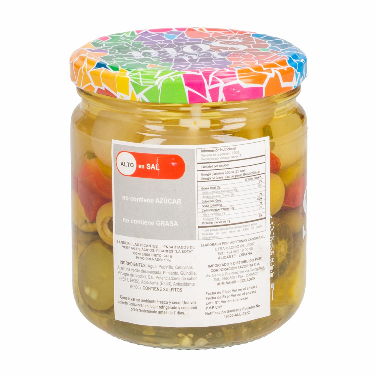 Banderillas Picantes LA SOTA 340 G – LA SOTA. Disponible en nuestros locales. Precio y stock pueden variar según la tienda.