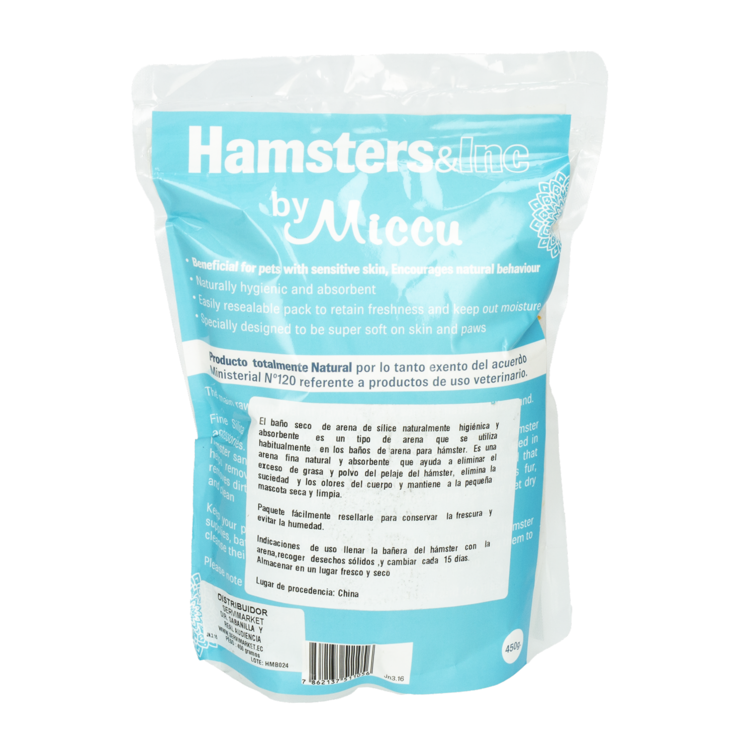 - Ideal para usarse en hámsters, gerbos, y otros roedores, el baño seco ayuda a mantener su pelaje suave, limpio y libre de olores, promoviendo el bienestar de tu mascota de manera natural.