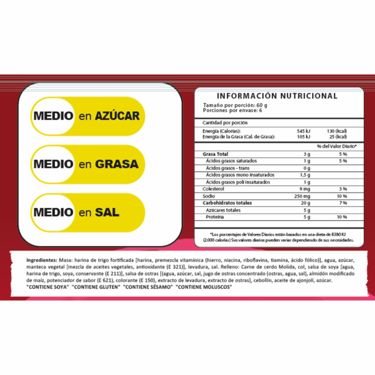 - - Los Baos están rellenos de carne de cerdo,- Son de origen asiático y se caracterizan por ser un tipo de bollo al vapor,- Tienen una textura suave y esponjosa,- Son una opción rápida y fácil para una comida o snack,- Pueden ser calentados en el microondas o al vapor