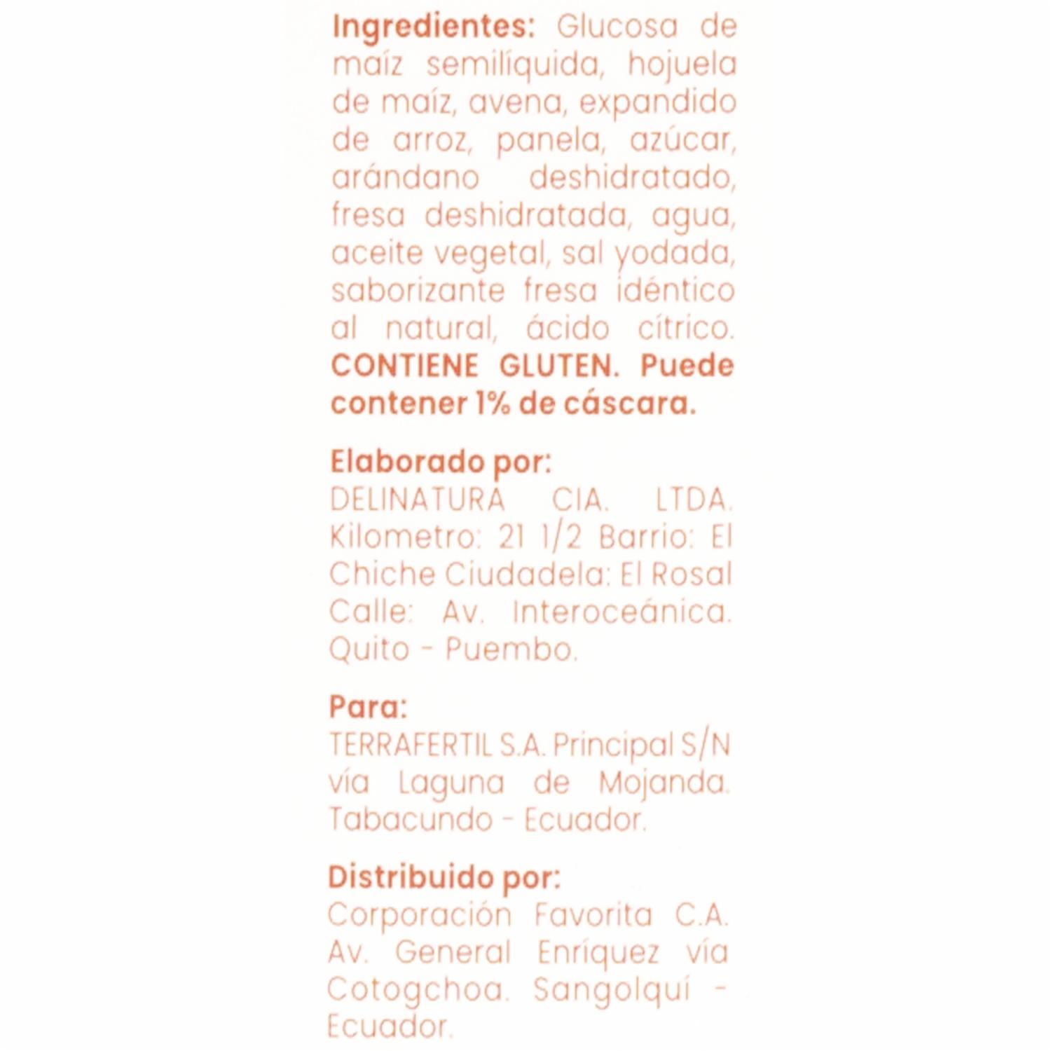 • La barra de cereal con frutos rojos generalmente contiene una mezcla de granos integrales, como avena, arroz inflado, trigo u otros cereales, junto con frutos rojos deshidratados o secos