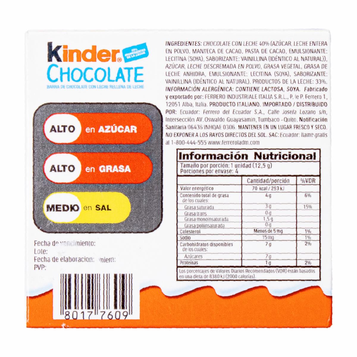 Barra De Chocolate 33% Ingredientes De La Leche KINDER 50 G