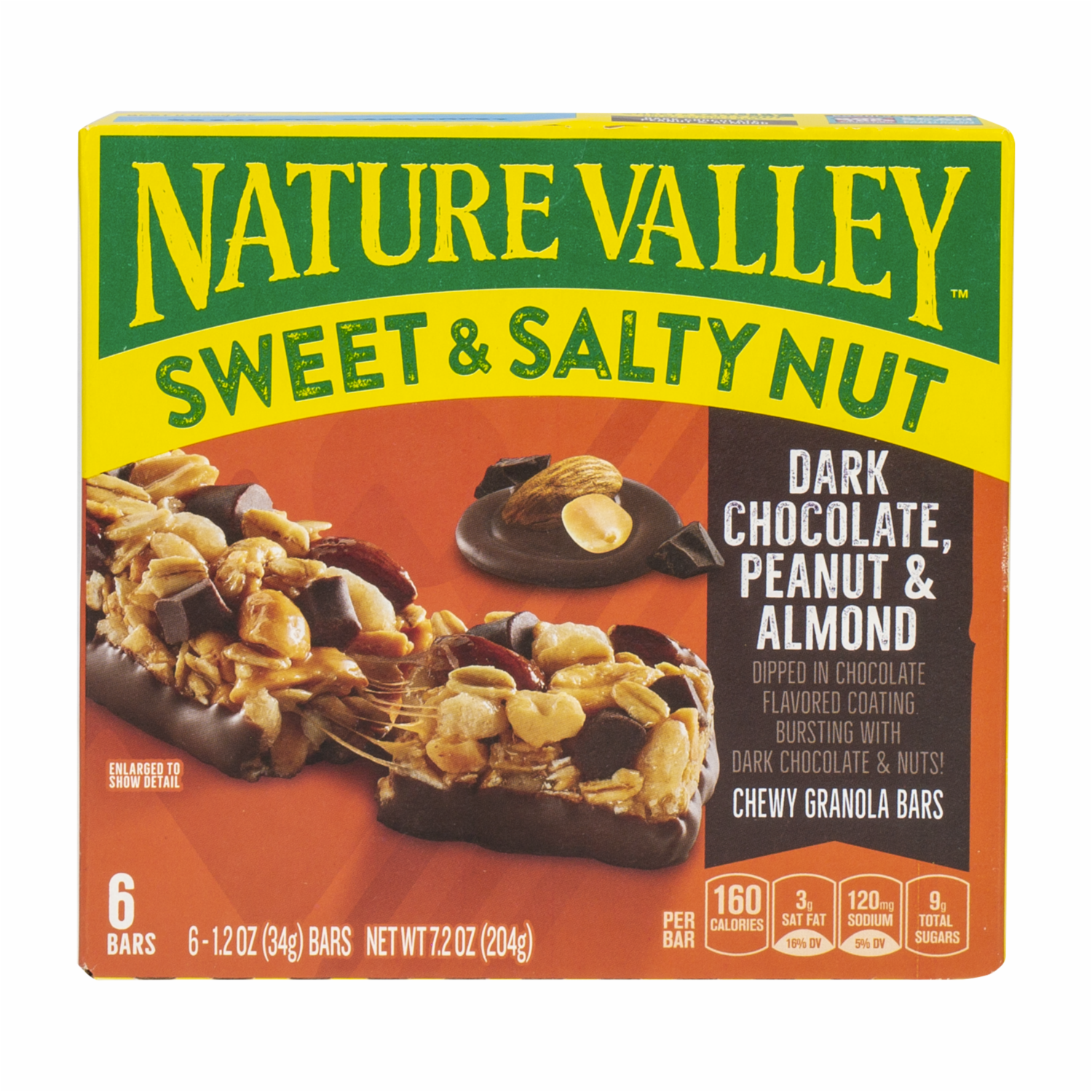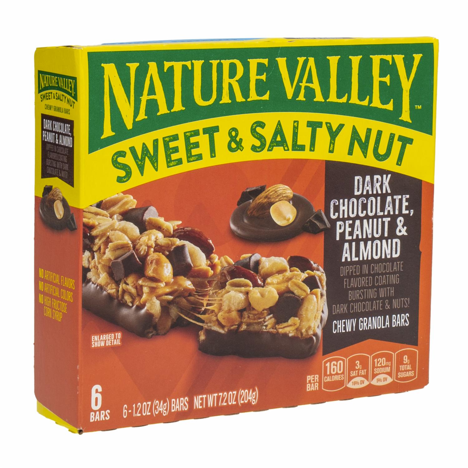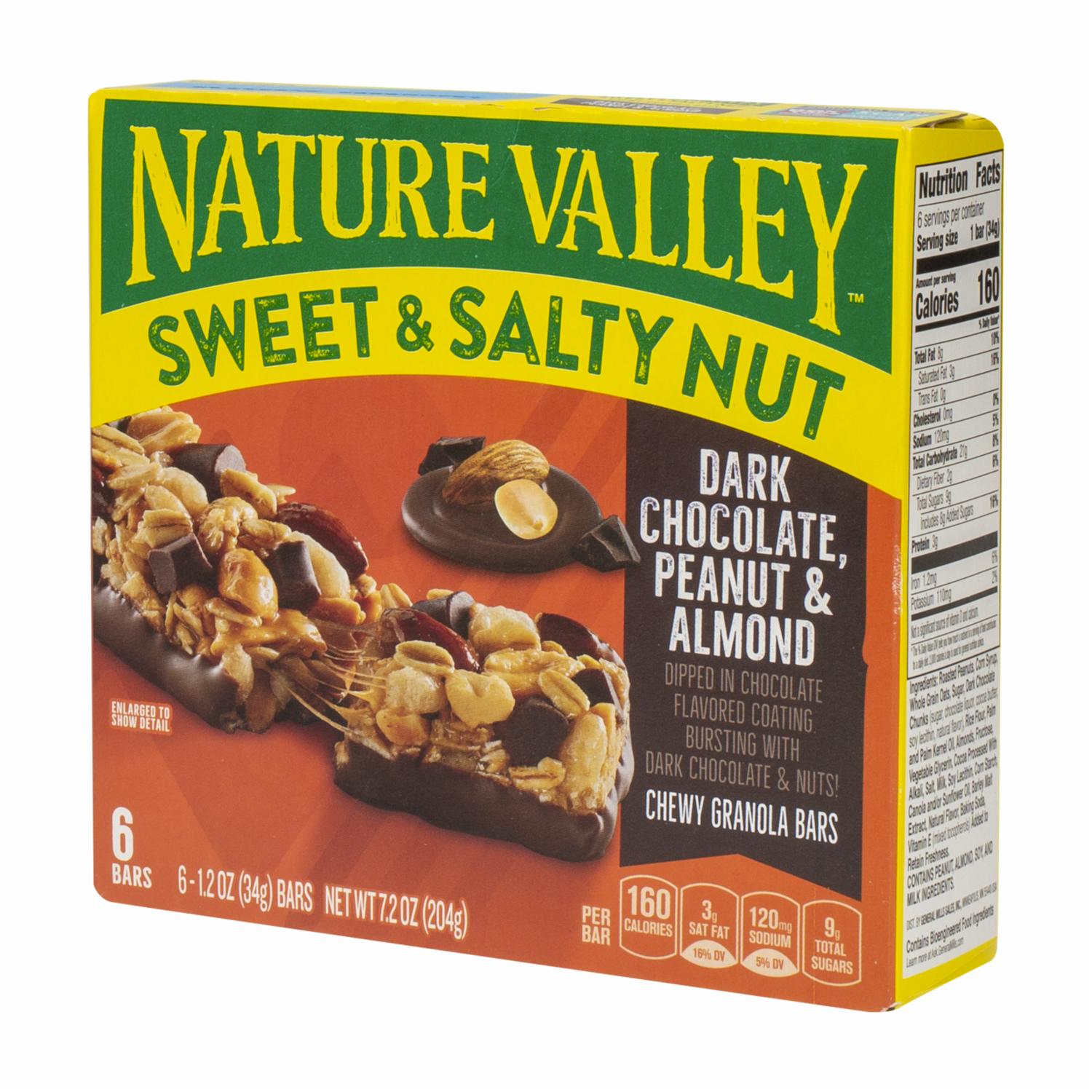 - Las Barras De Chocolate Negro, Maní Y Almendras Dulces Y Saladas De Nature Valley Son Un Equilibrio Perfecto De Granola Masticable Y Deliciosos Maní Y Almendras Reales, Repletas De Chocolate Negro Y Nueces, Bañadas En Una Capa De Mantequilla De Maní