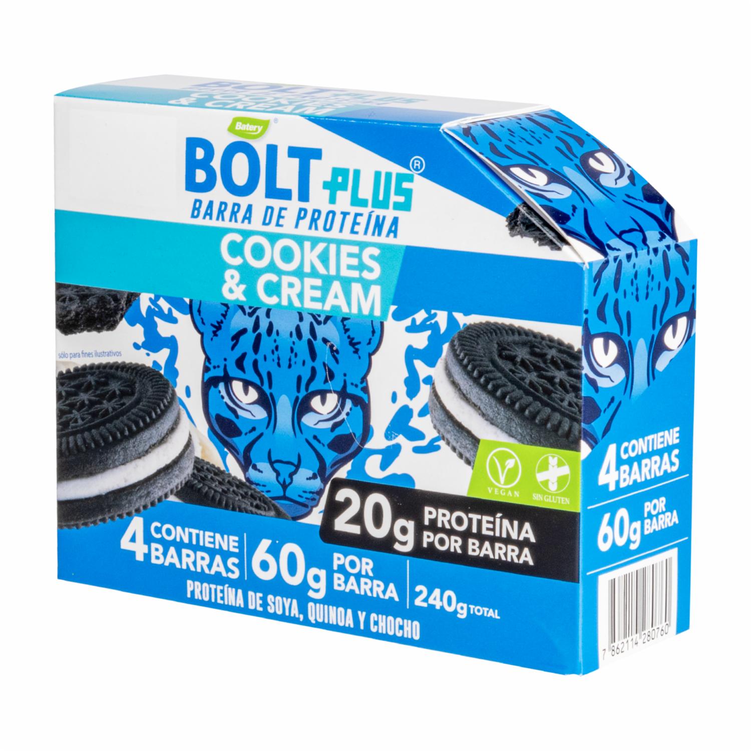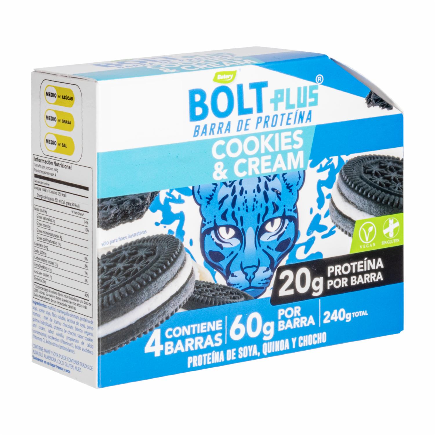 - Disfruta de una deliciosa y nutritiva barra de proteína sabor Cookies & Cream de BOLT. Esta barra está diseñada para brindarte un impulso de proteína de alta calidad con un delicioso sabor a galletas y crema, ideal para satisfacer tus antojos de manera saludable