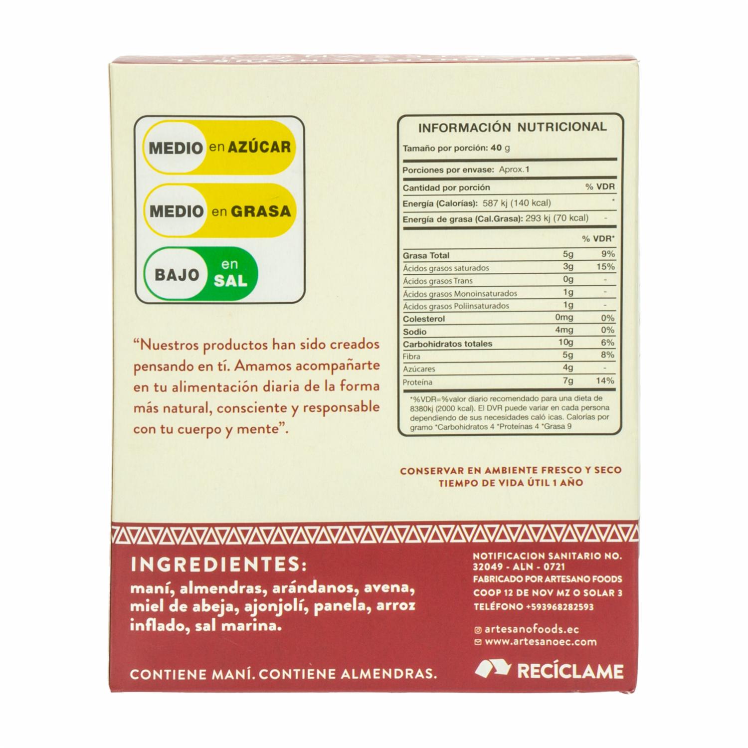 consultando preciosBarra Energética De Arándanos ARTESANO 200 G – ARTESANO. Disponible en nuestros locales. Precio y stock pueden variar según la tienda.