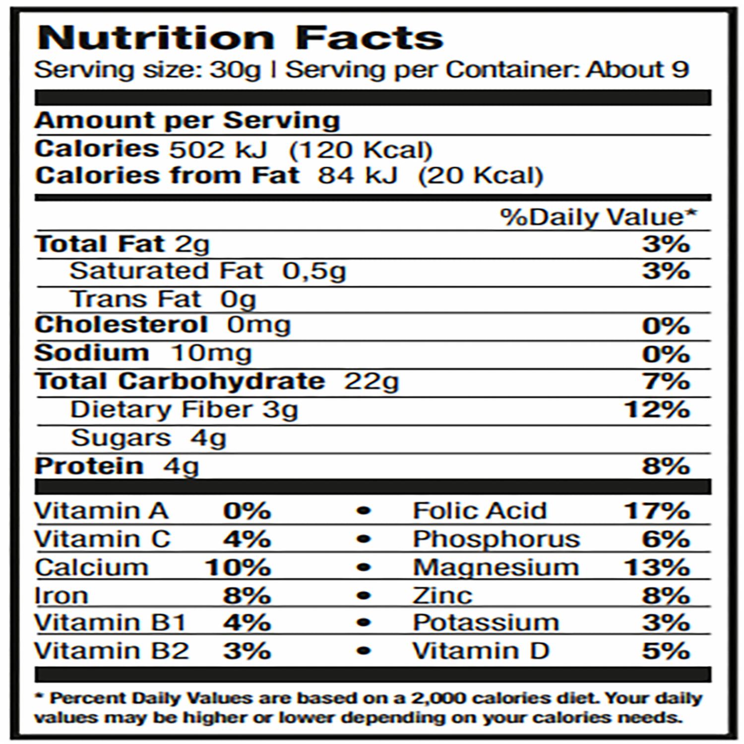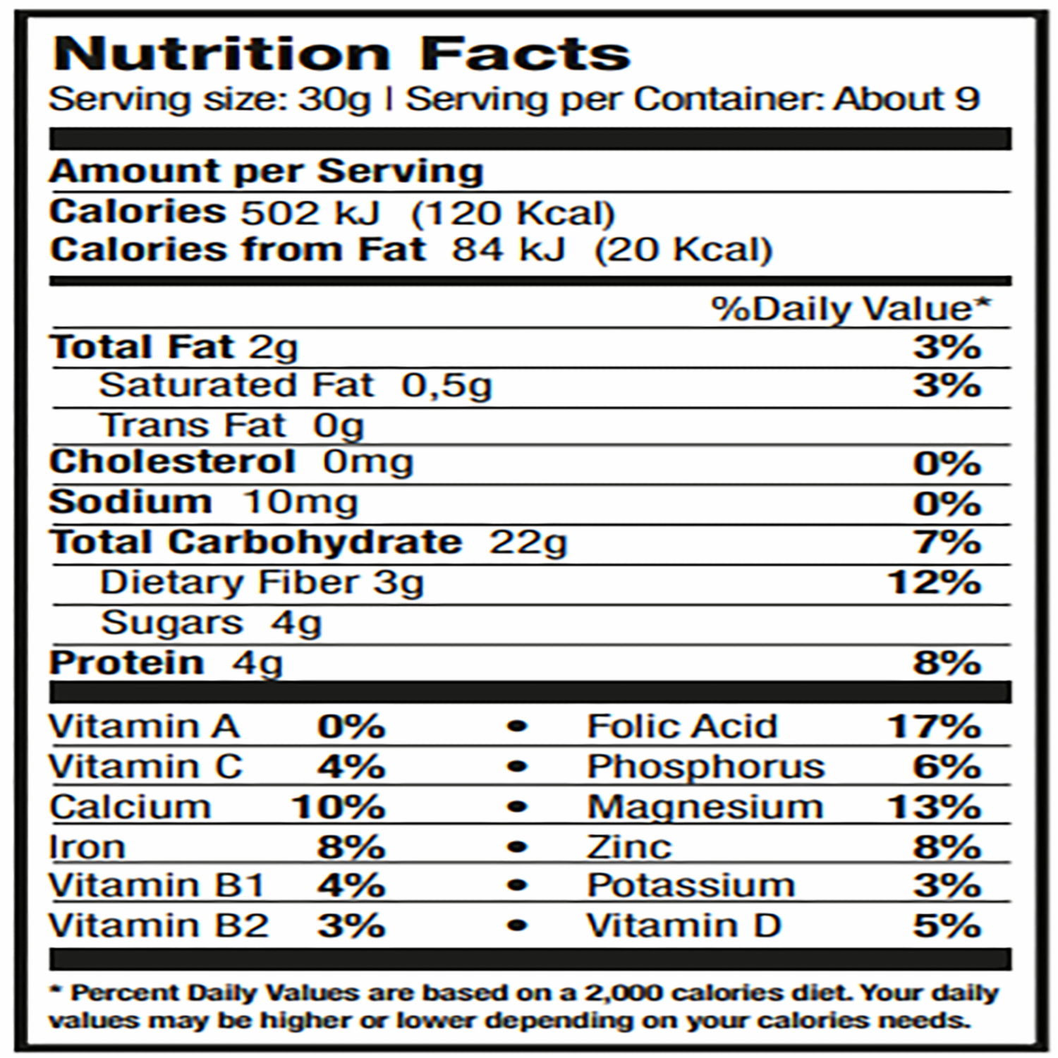 - Producto que aprovecha las propiedades saludables de la quinua en una presentación de cereal clásica con un alto porcentaje de fibra