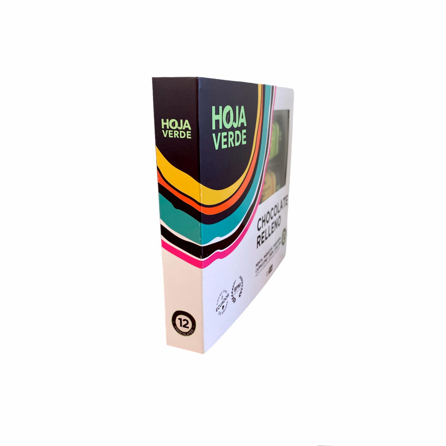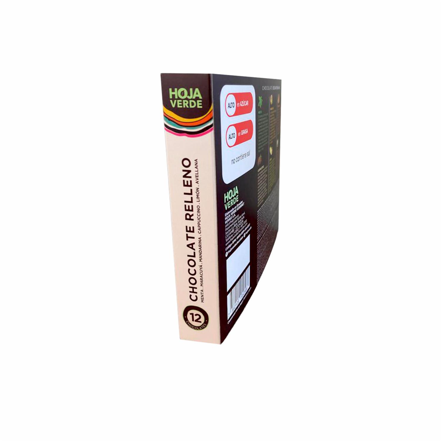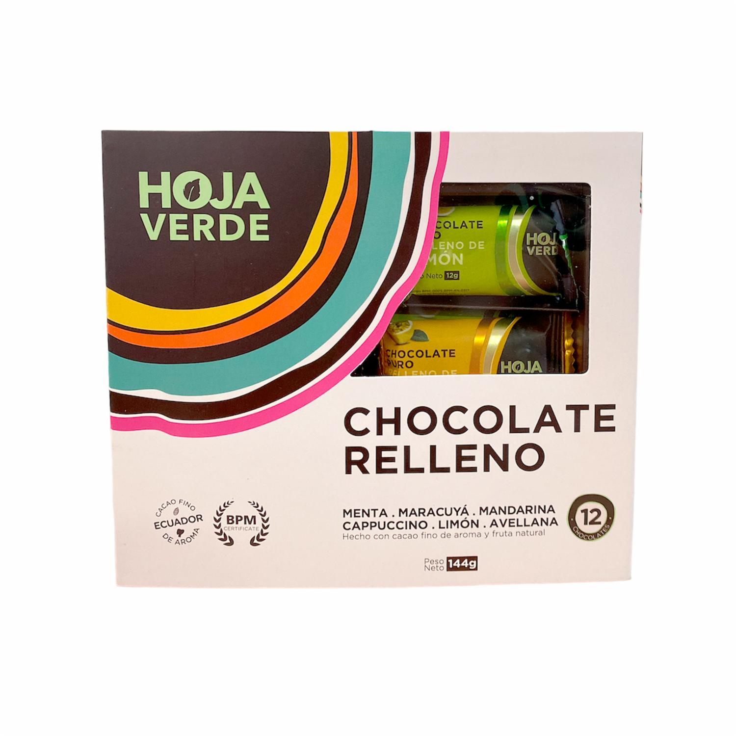 Barras De Chocolate Puro Rellenas Varios Sabores HOJA VERDE Pack 12 X 12 G