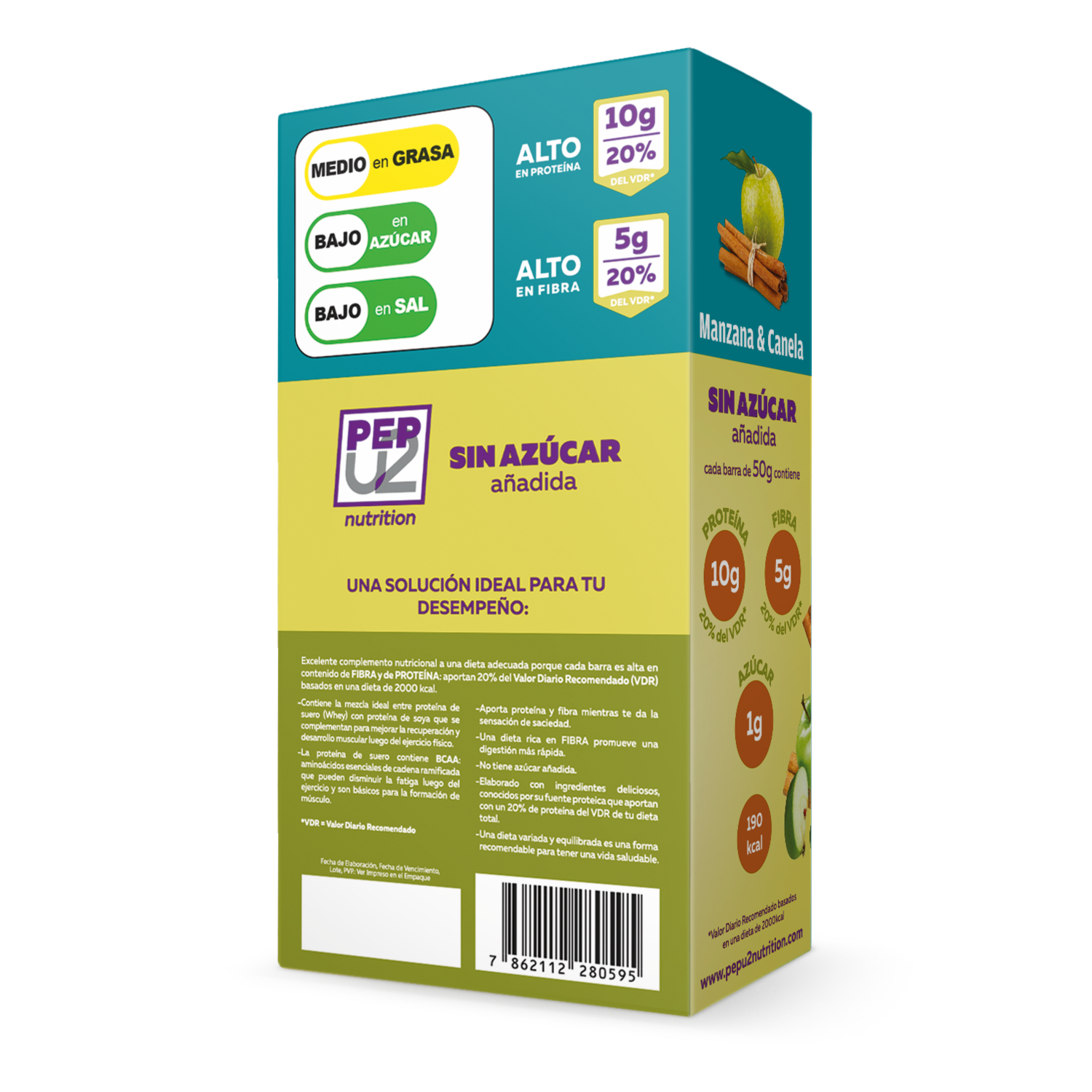 Barras De Proteína Vegetal Con Fibra Manzana Y Canela PEPU2 NUTRITION 4 Uds X 50 G
