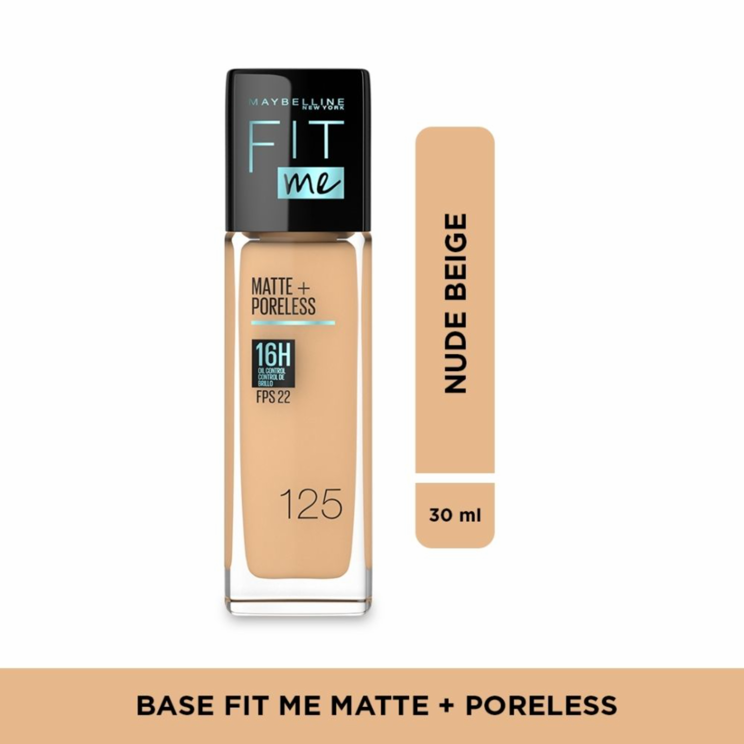 Base De Maquillaje Líquida Fit Me Mate + Poreless Fps 22 Tono 125 Nude Beige MAYBELLINE NEW YORK 30 Ml