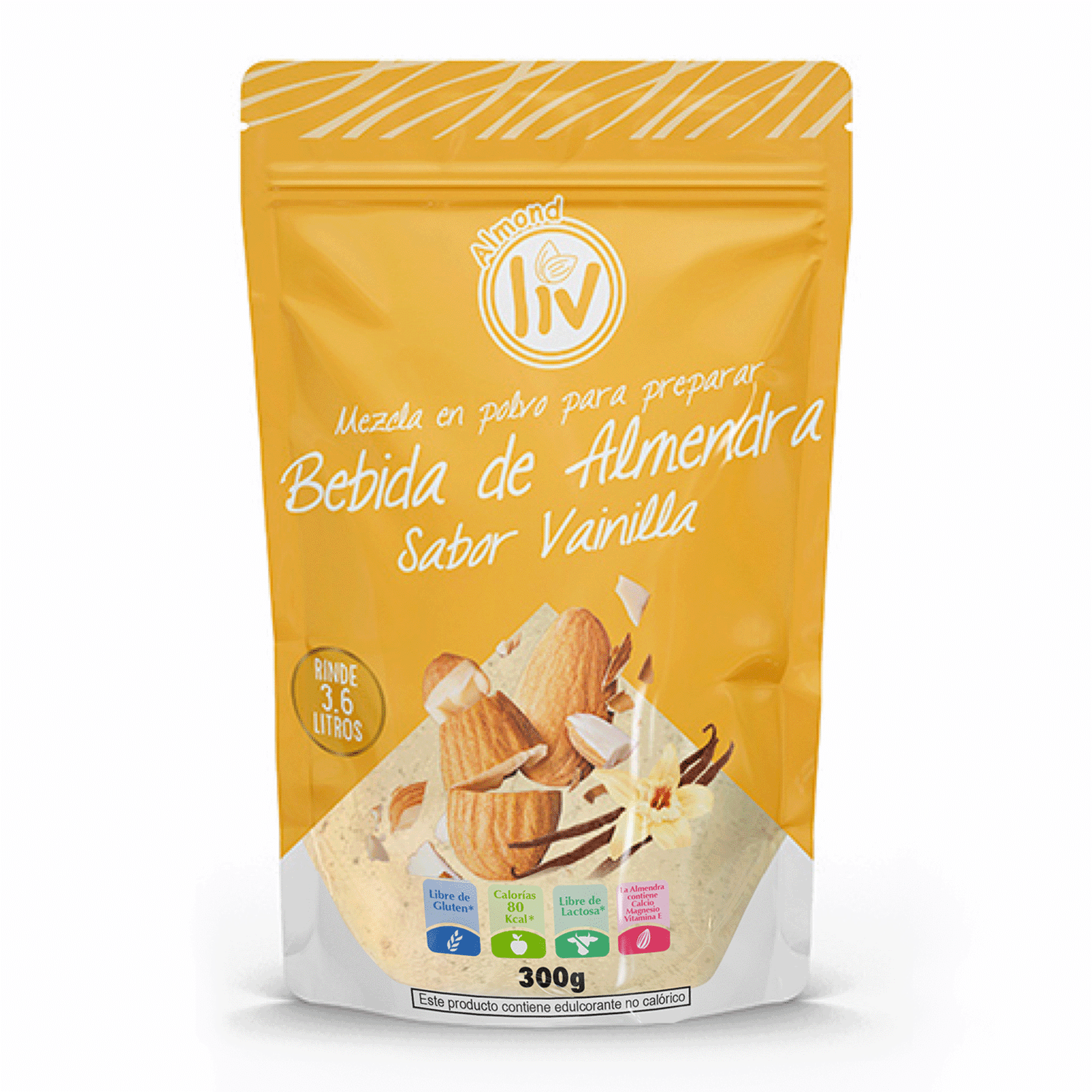 Liv Bebida De Almendra Sabor Vainilla En Polvo, Lista Para Mezclar Con Agua O Cualquier Bebida Fría O Caliente, Libre De Lactosa
