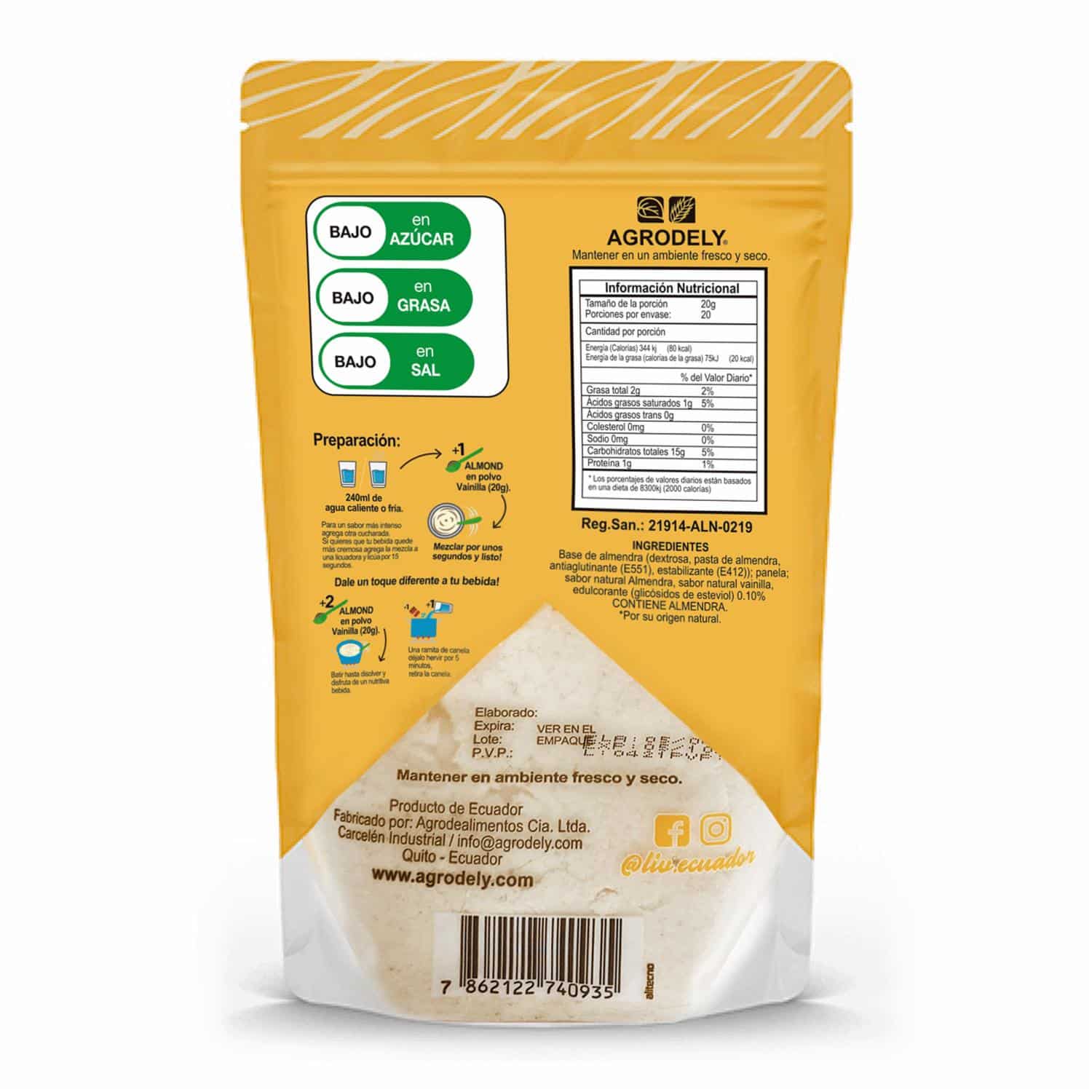 Bebida De Almendra Sabor A Vainilla En Polvo Lista LIV 300 G