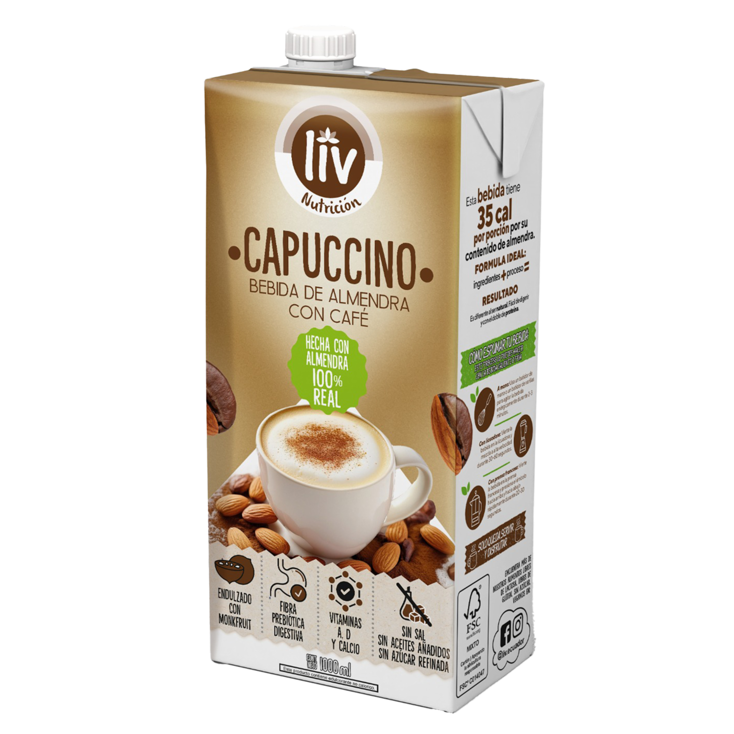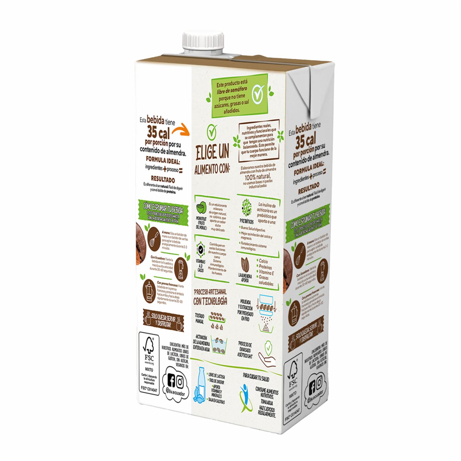 Bebida De Almendra Sabor Capuccino Endulzada Con Monkfruit LIV 1000 Ml