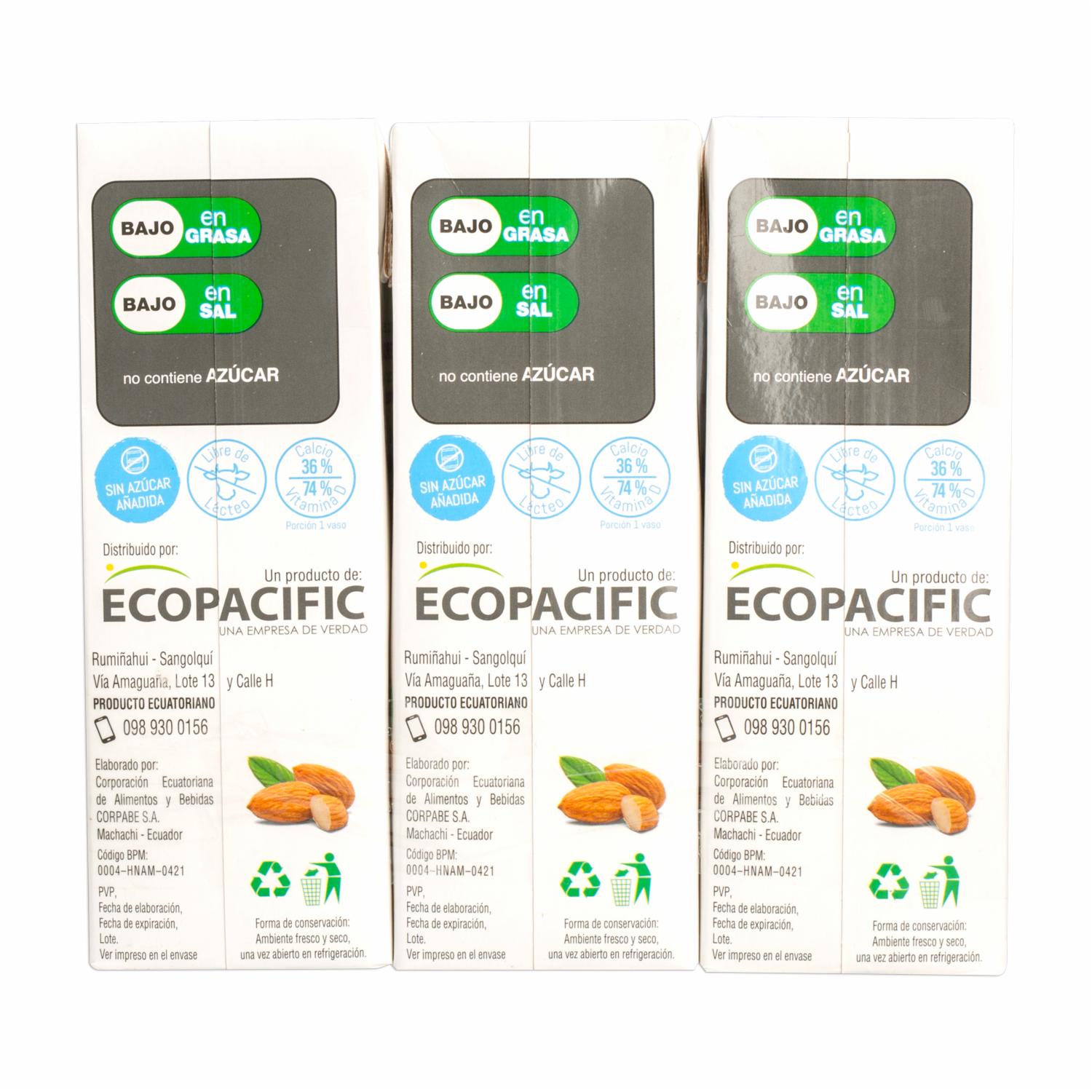Bebida De Almendras Natural ECOLOVE 3 X 1 000 Ml