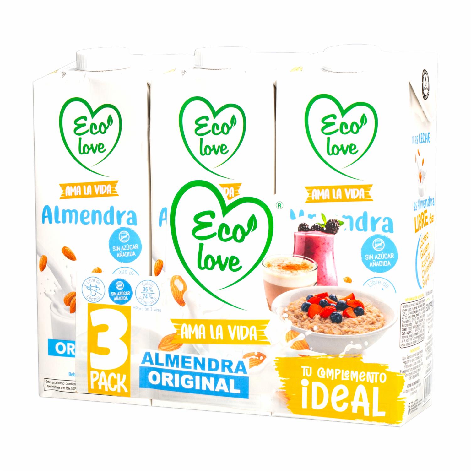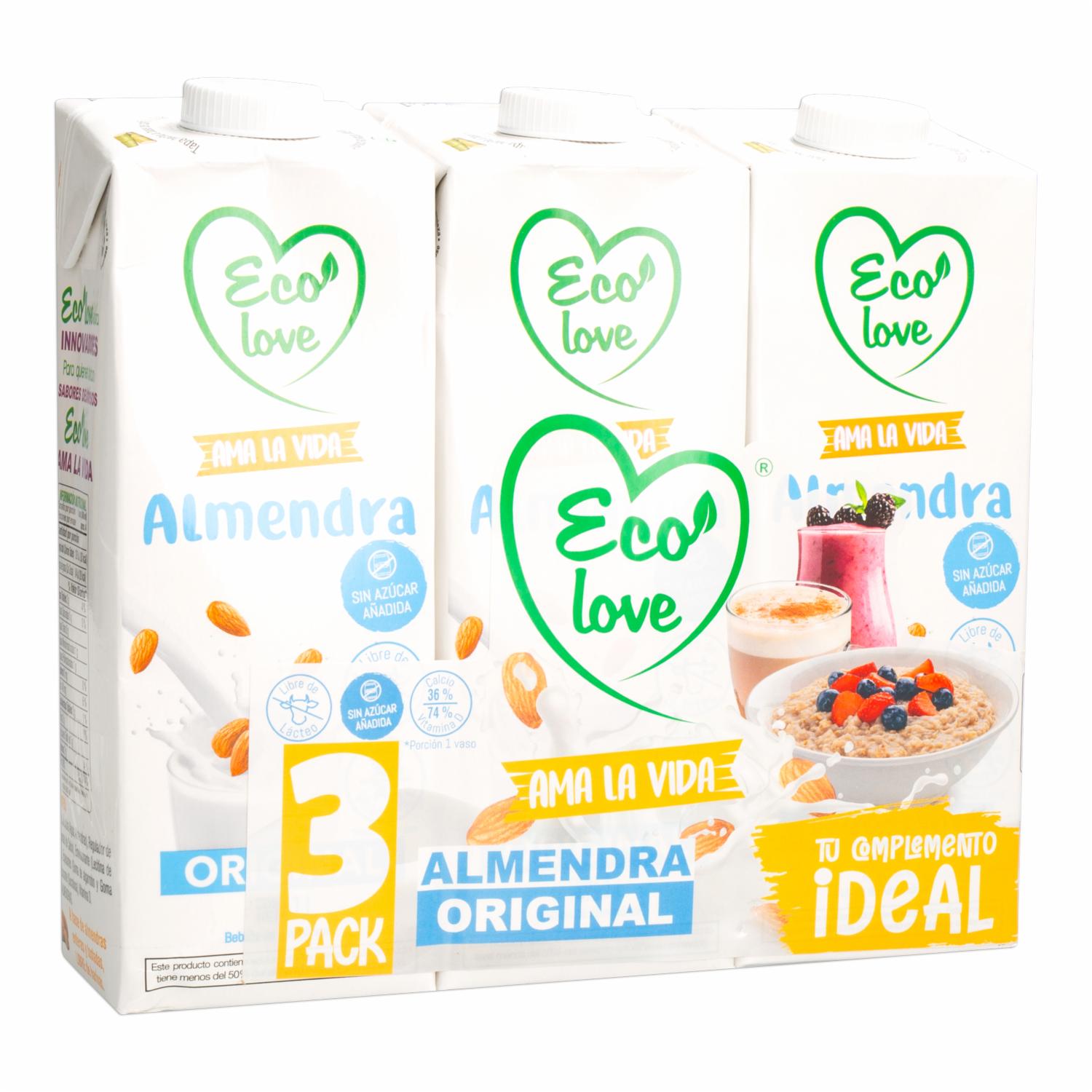 - La Bebida De Almendras Natural Ecolove En Presentación De 3 X 1,000 Ml Es Un Producto Alimenticio Que Ofrece Una Alternativa Saludable Y Deliciosa A La Leche Convencional. Ecolove Es Una Marca Que Se Destaca Por Sus Productos Ecológicos Y Orientados Hacia Un Estilo De Vida Saludable