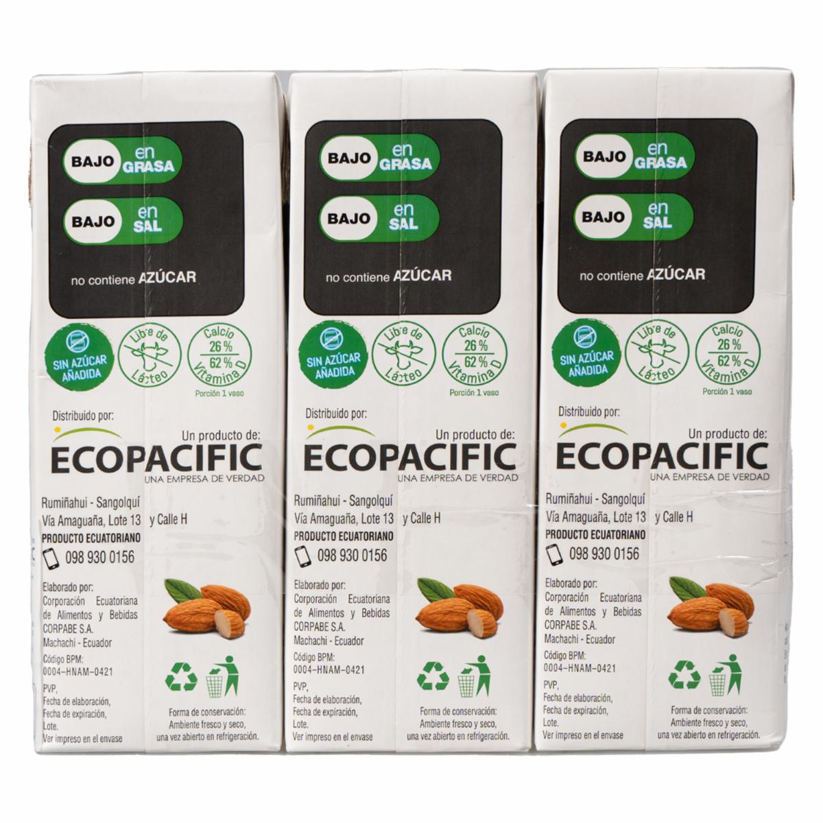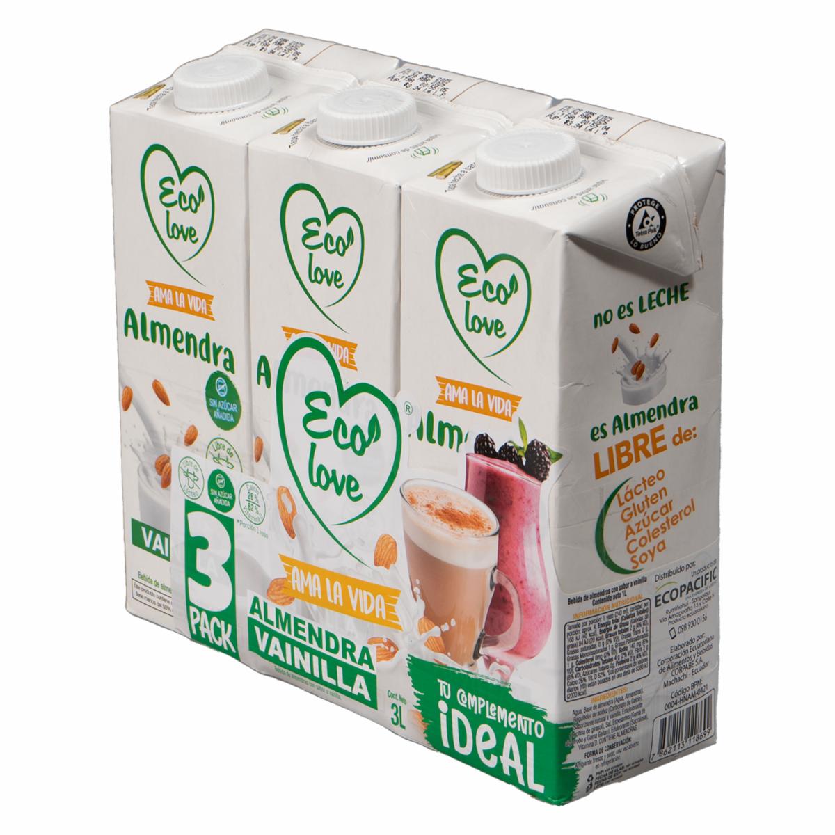 Bebida De Almendras Sabor A Vainilla ECOLOVE 3 X 1 000 Ml
