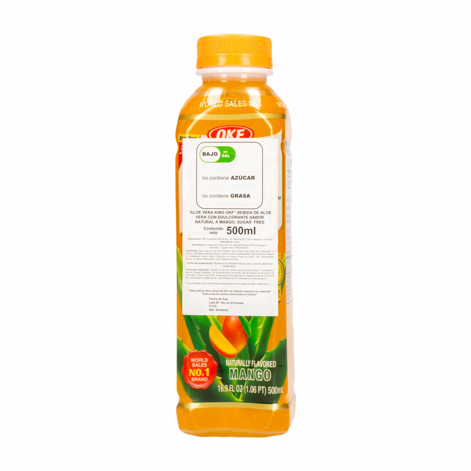 Bebida De Aloe Vera De Mango Sin Azúcar OKF 500 Ml
