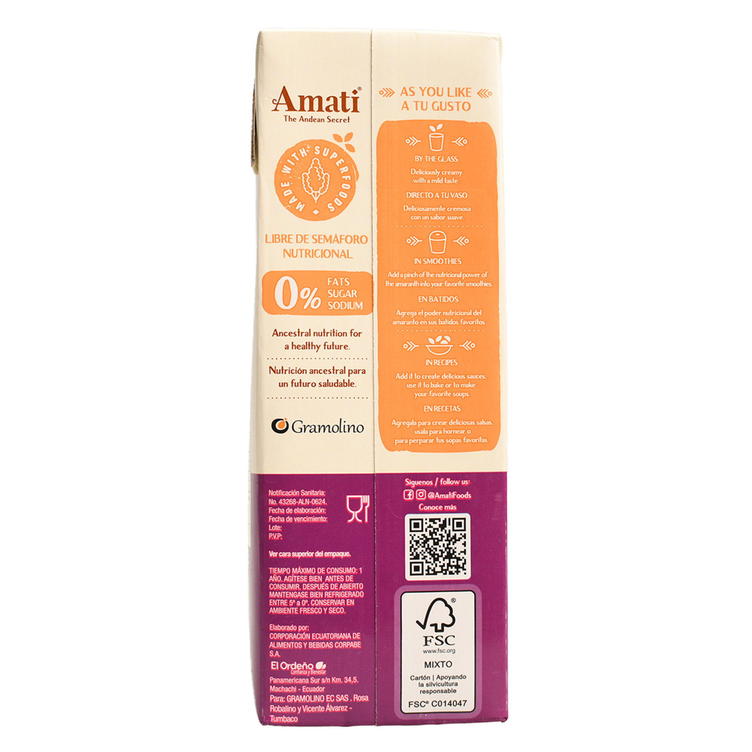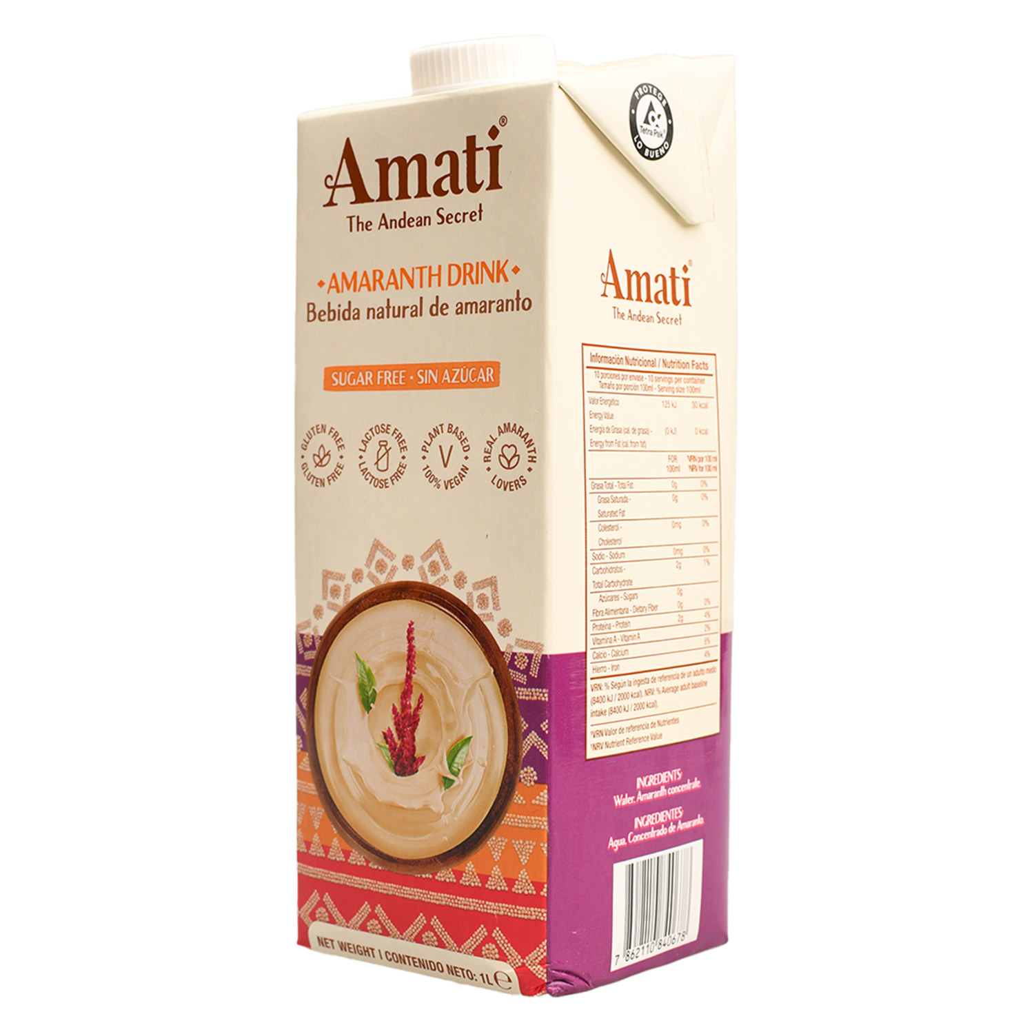 - Disfruta de una bebida nutritiva y deliciosa con la bebida de amaranto natural AMATI. Rica en proteínas y antioxidantes, es perfecta para acompañar tus desayunos o como refresco saludable a cualquier hora del día. Cada sorbo aporta energía y bienestar de manera natural