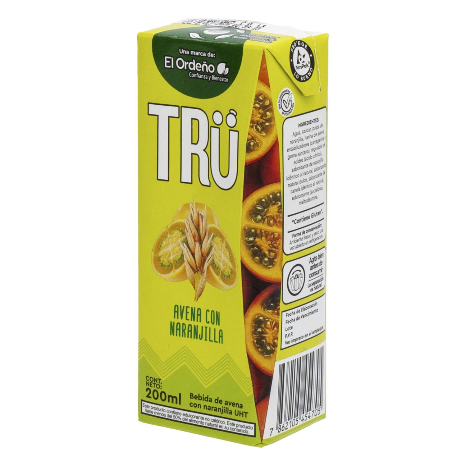 Bebida De Avena Con Naranjilla Uht TRÜ 200 Ml – TRU. Disponible en nuestros locales. Precio y stock pueden variar según la tienda.