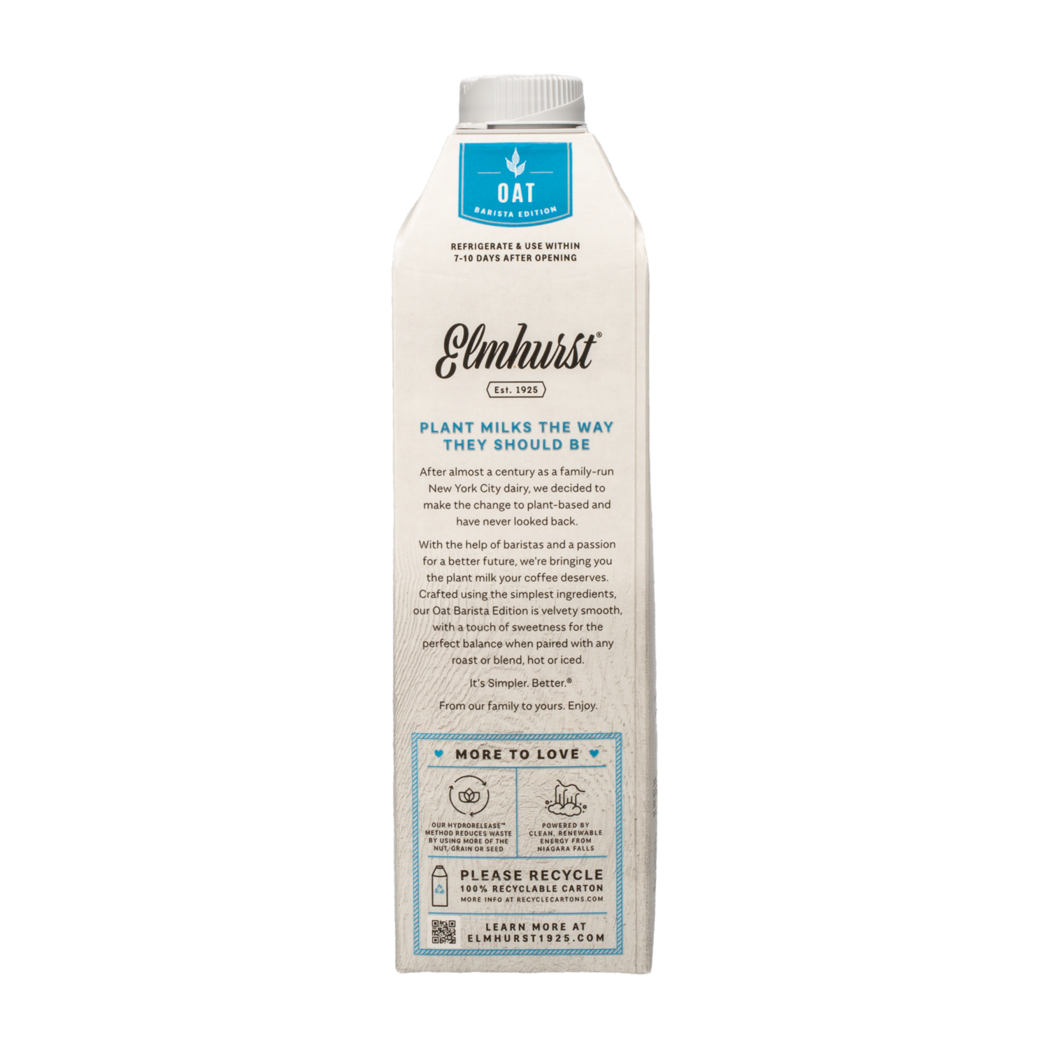 Bebida Vegetal Avena Barista Vegana Kosher ELMHURST 946 Ml