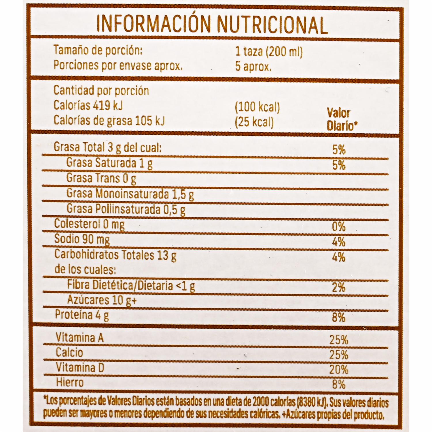 - No contiene azúcar añadida y está elaborada a base de almendra, fortificada con calcio y vitaminas A y D