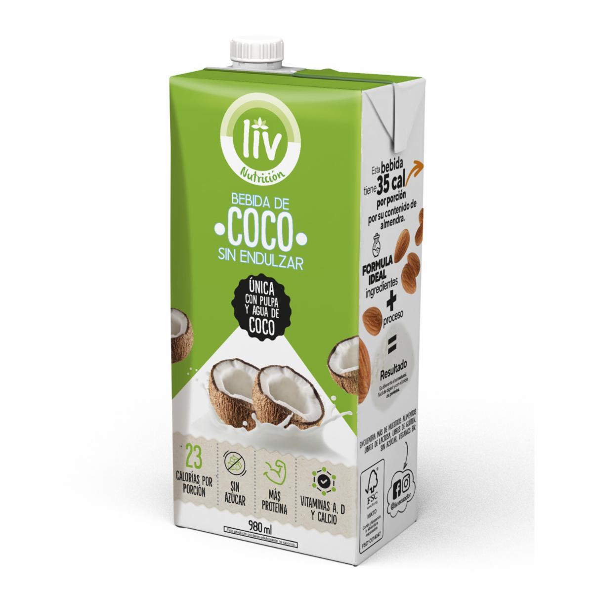 - Liv Bebida De Coco Sin Azúcar, Sin Endulzar, Elaborada A Base De Coco Natural, Ideal Para Consumirla Directamente O Preparar Batidos, Libre De Aceites, Libre De Sal, Libre De Saborizantes, Enriquecida Con Proteína De Arveja, Baja En Calorías, Contiene Vitaminas Y Calcio