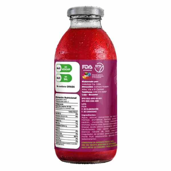 Nuestros productos son elaborados con hierbas aromaticas seleccionadas, con agua purificada y ozonificada. Endulzados con Stevia y monk Fruit, y sobre todo contiene concentrado de frutas naturales y enrique con vitamina C.Nuestros productos no contienen preservantes ni colorantes artificiales