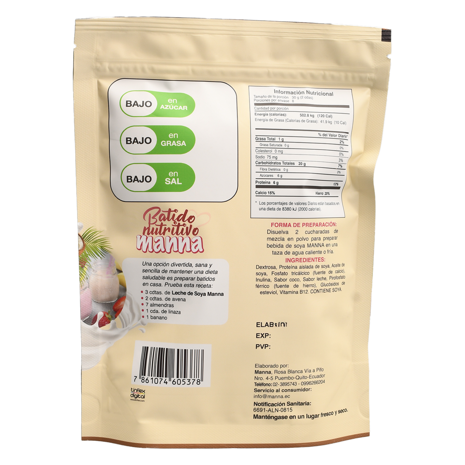 Bebida De Soya En Polvo Sabor A Coco MANNA 250 G