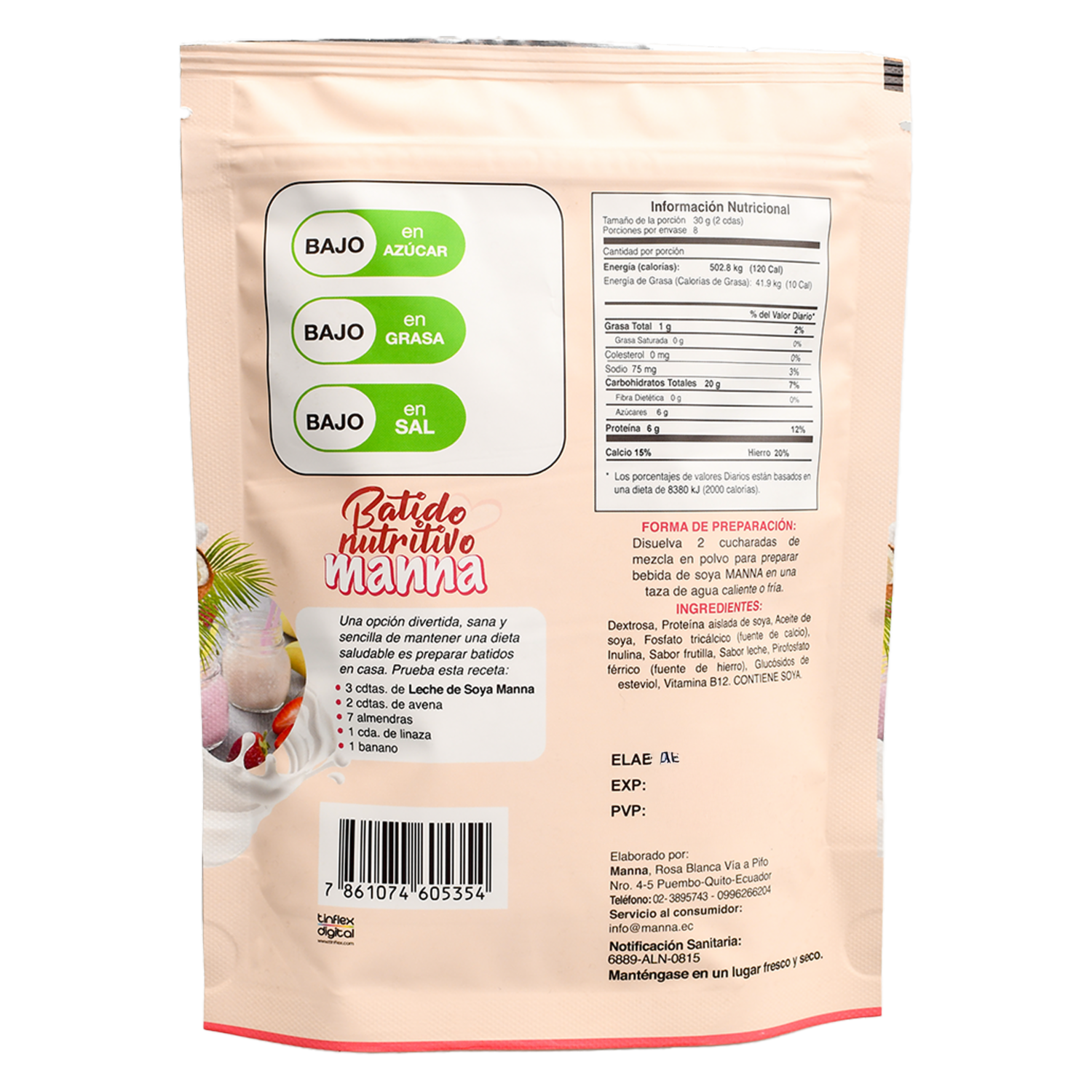Bebida De Soya En Polvo Sabor A Frutilla MANNA 250 G