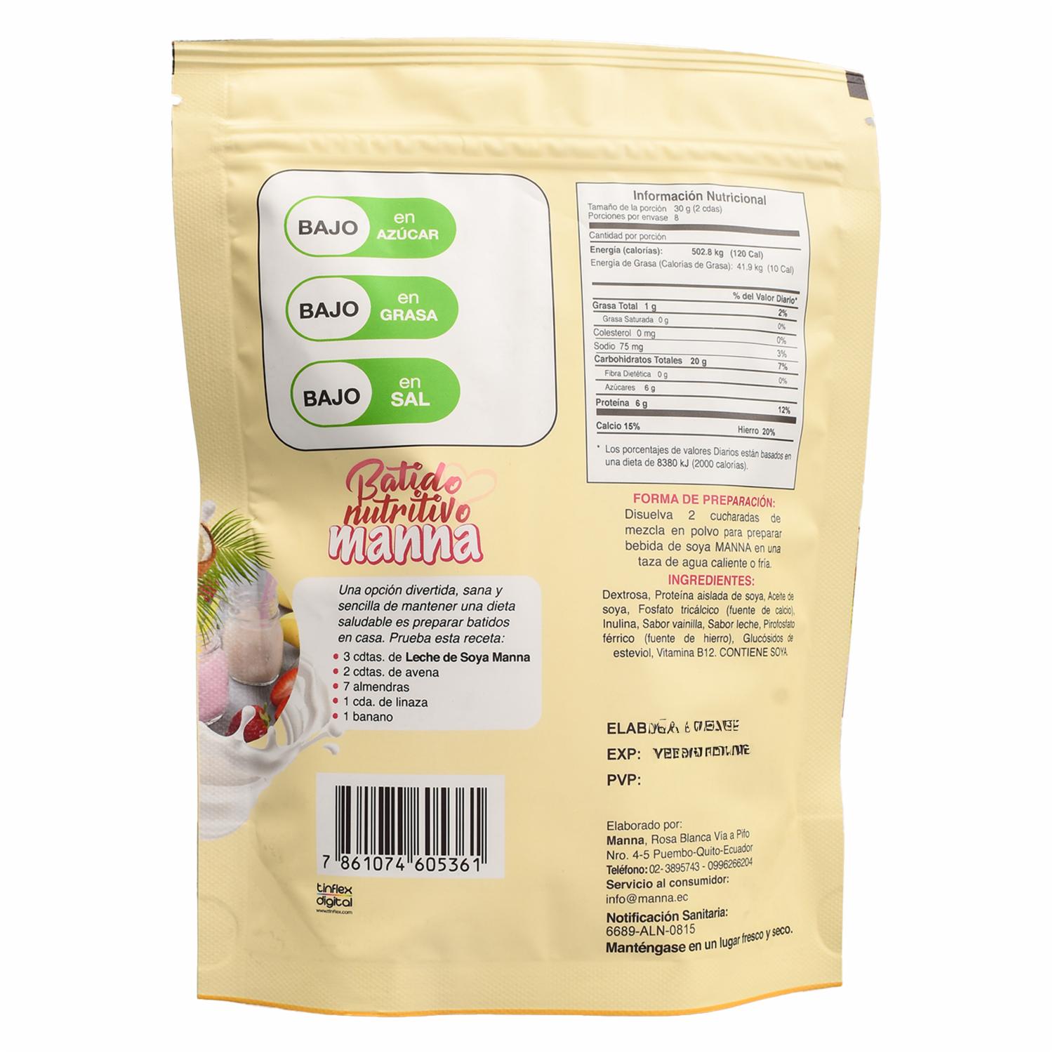 Bebida De Soya En Polvo Sabor A Vainilla MANNA 250 G