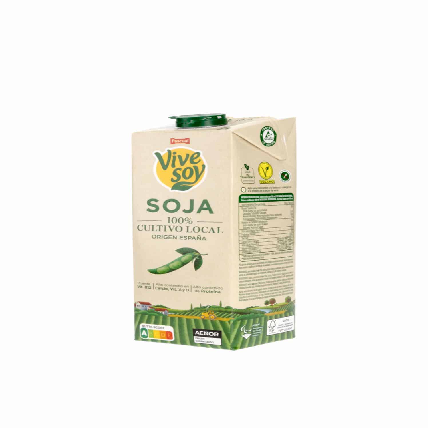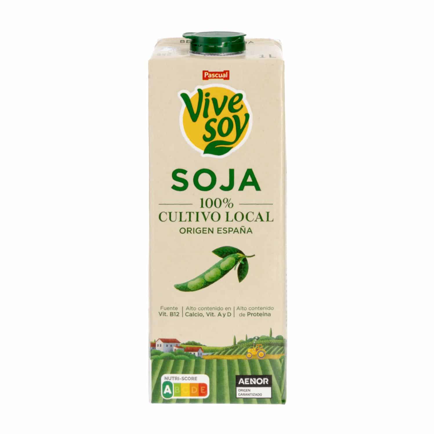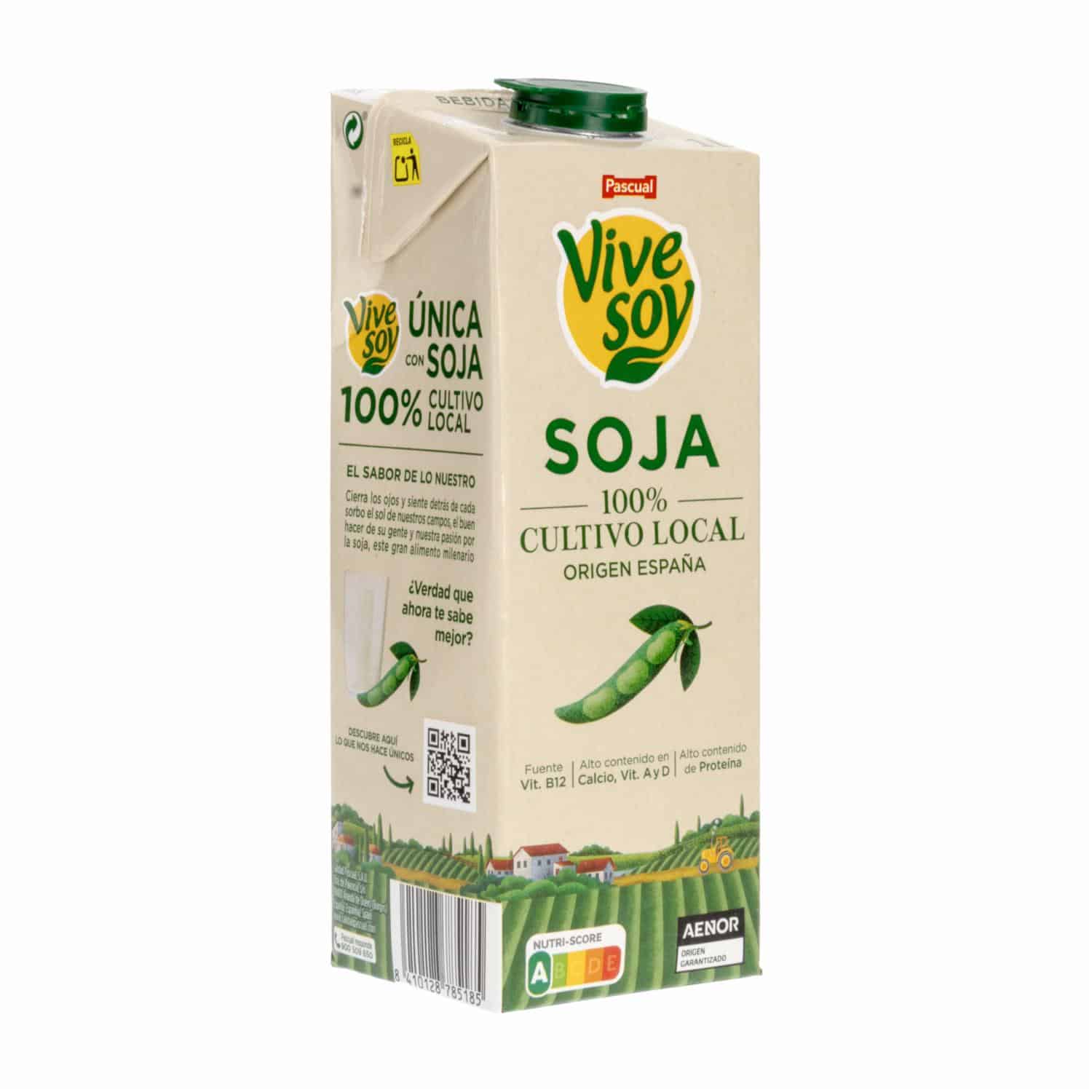La bebida de soya natural "VIVE SOY" se presenta en un envase de 1,000 ml. Esta bebida de soya es una alternativa popular a la leche de vaca y es especialmente adecuada para personas que prefieren o necesitan evitar los productos lácteos, como los veganos o aquellos con intolerancia a la lactosa