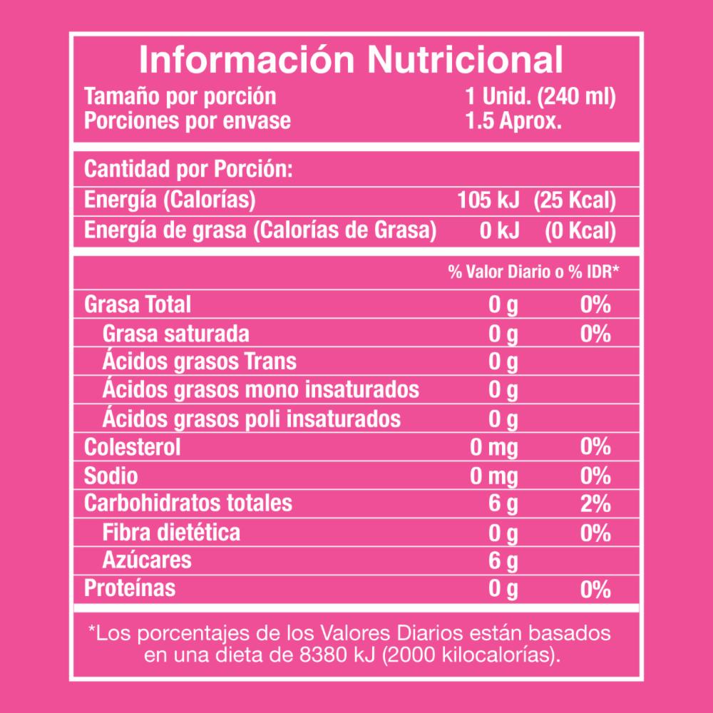Bebida carbonatada con sabor artificial de sandía, elaborada mediante la infusión de té negro y endulzada con un edulcorante no calórico