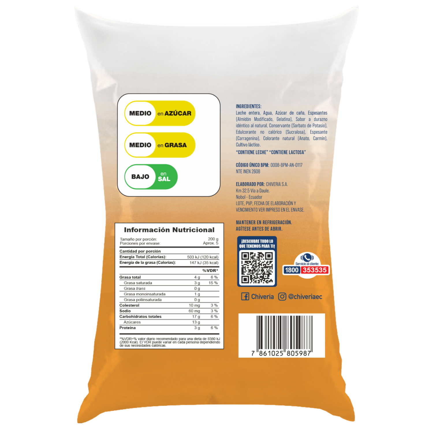 Bebida De Yogur Sabor A Durazno CHIVERIA Funda 900 G
