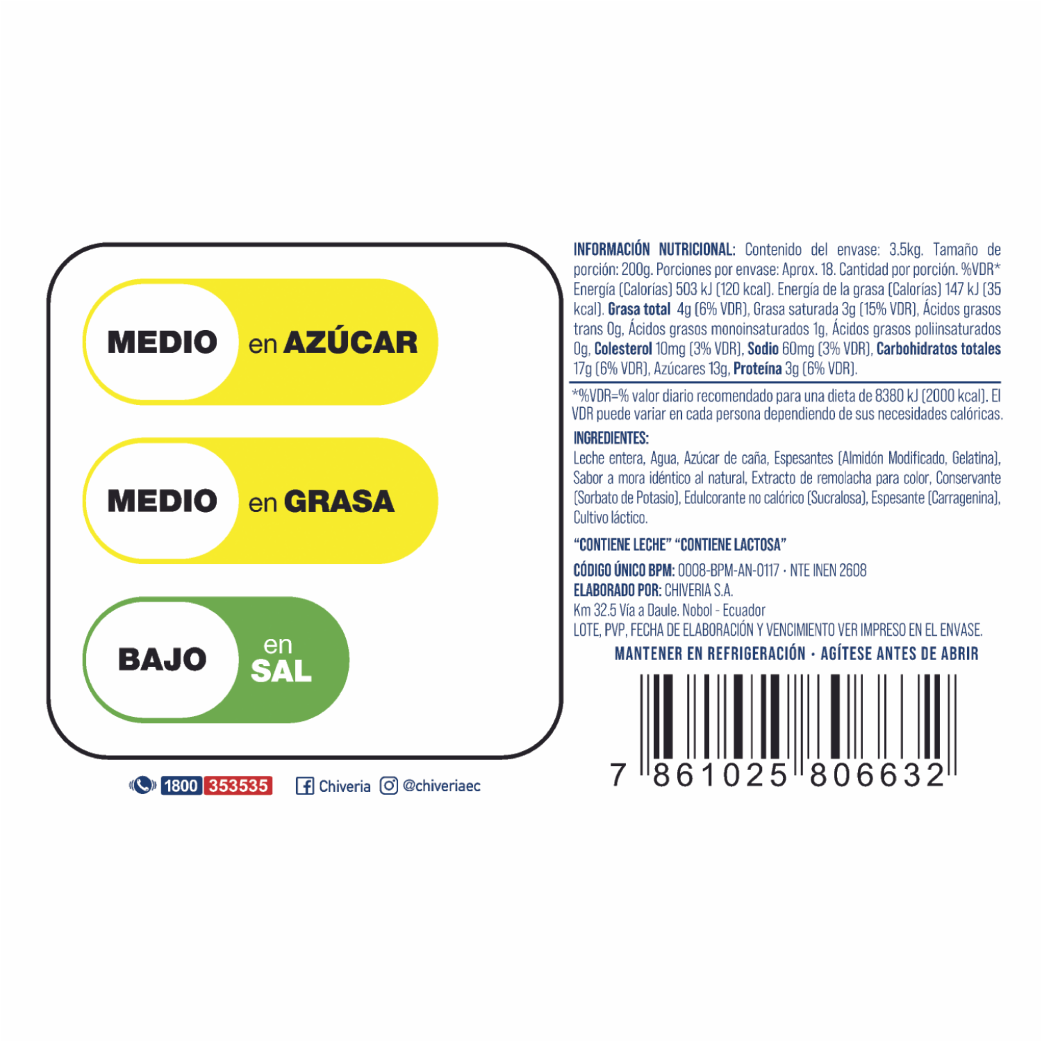 Bebida De Yogur Sabor A Mora CHIVERIA Galón 3500 G