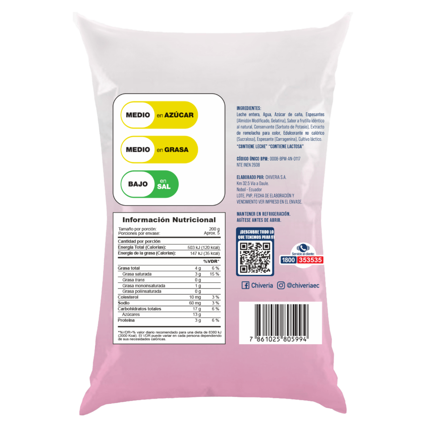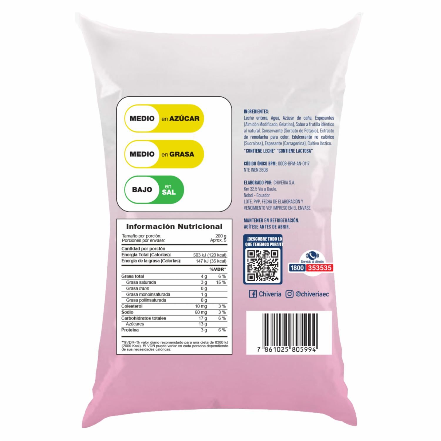 Bebida De Yogurt Sabor A Frutilla CHIVERIA Funda 900 G