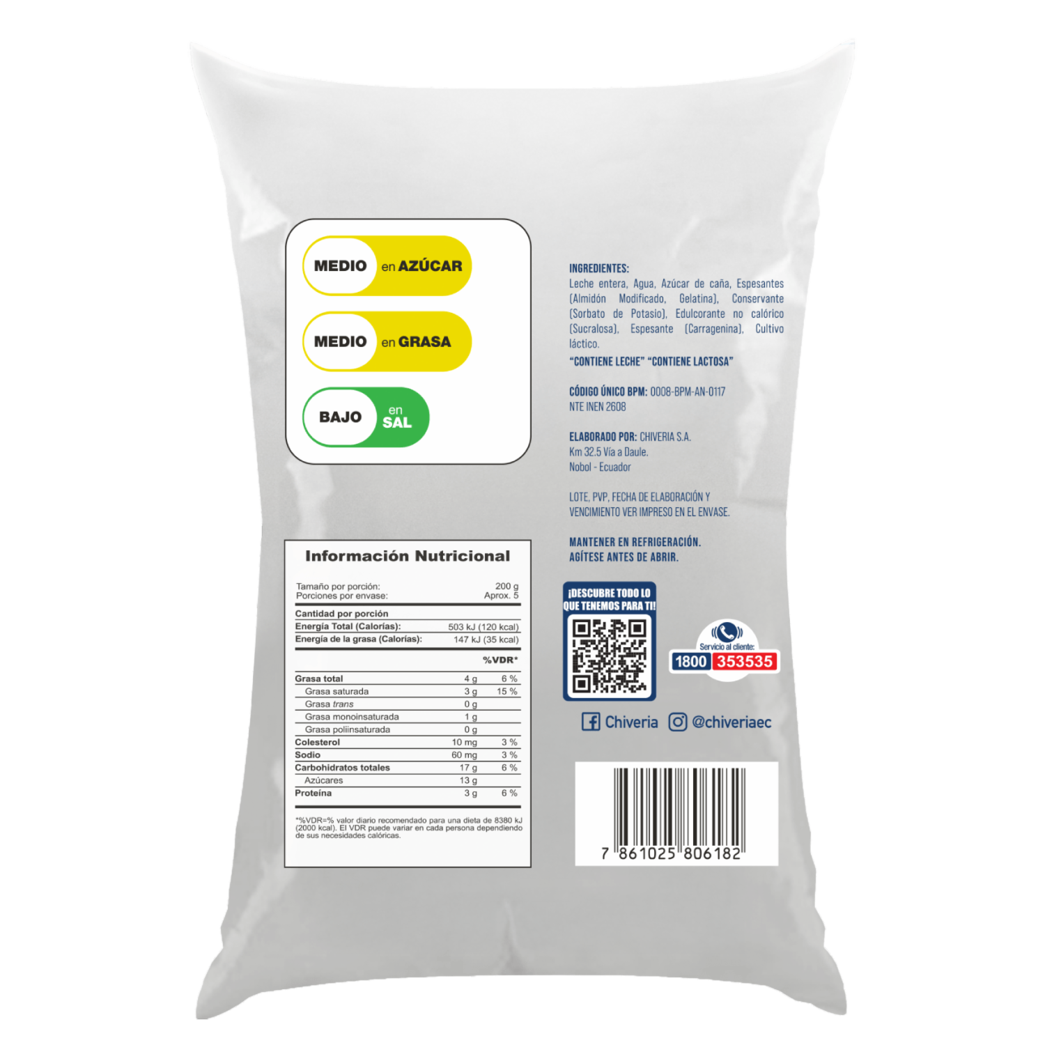 Bebida De Yogurt Sabor Clásico CHIVERIA Funda 900 G – CHIVERIA. Disponible en nuestros locales. Precio y stock pueden variar según la tienda.
