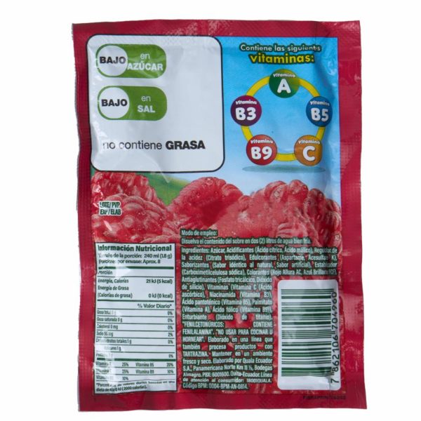 La Bebida en Polvo Sabor Frambuesa YA es una opción deliciosa y refrescante para disfrutar en cualquier momento del día. Con su sabor auténtico y fácil preparación, es ideal para quienes buscan una bebida práctica y sabrosa