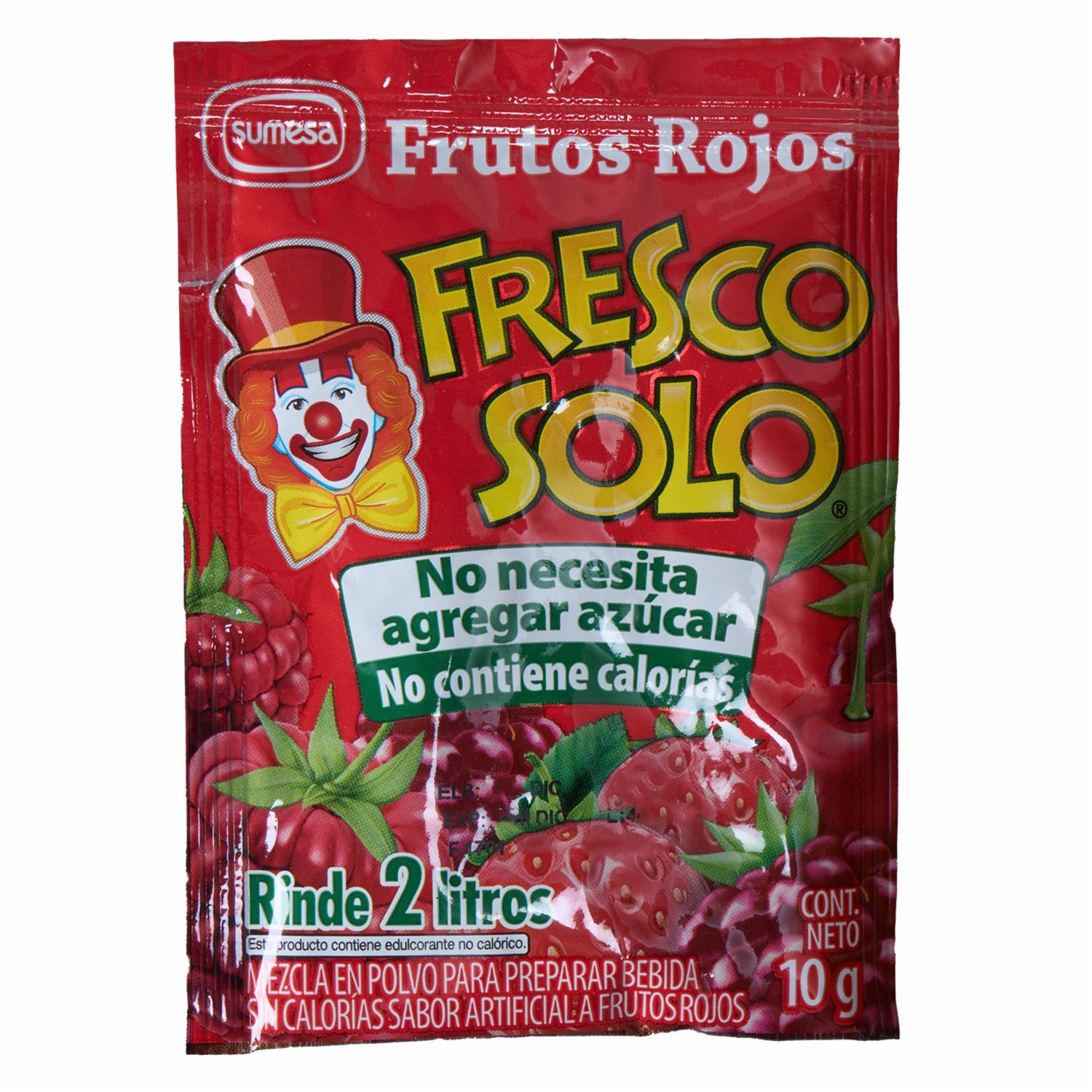 Bebida En Polvo Sabor A Frutos Rojos Sin Azúcar FRESCO SOLO 10 g – FRESCO SOLO. Disponible en nuestros locales. Precio y stock pueden variar según la tienda.