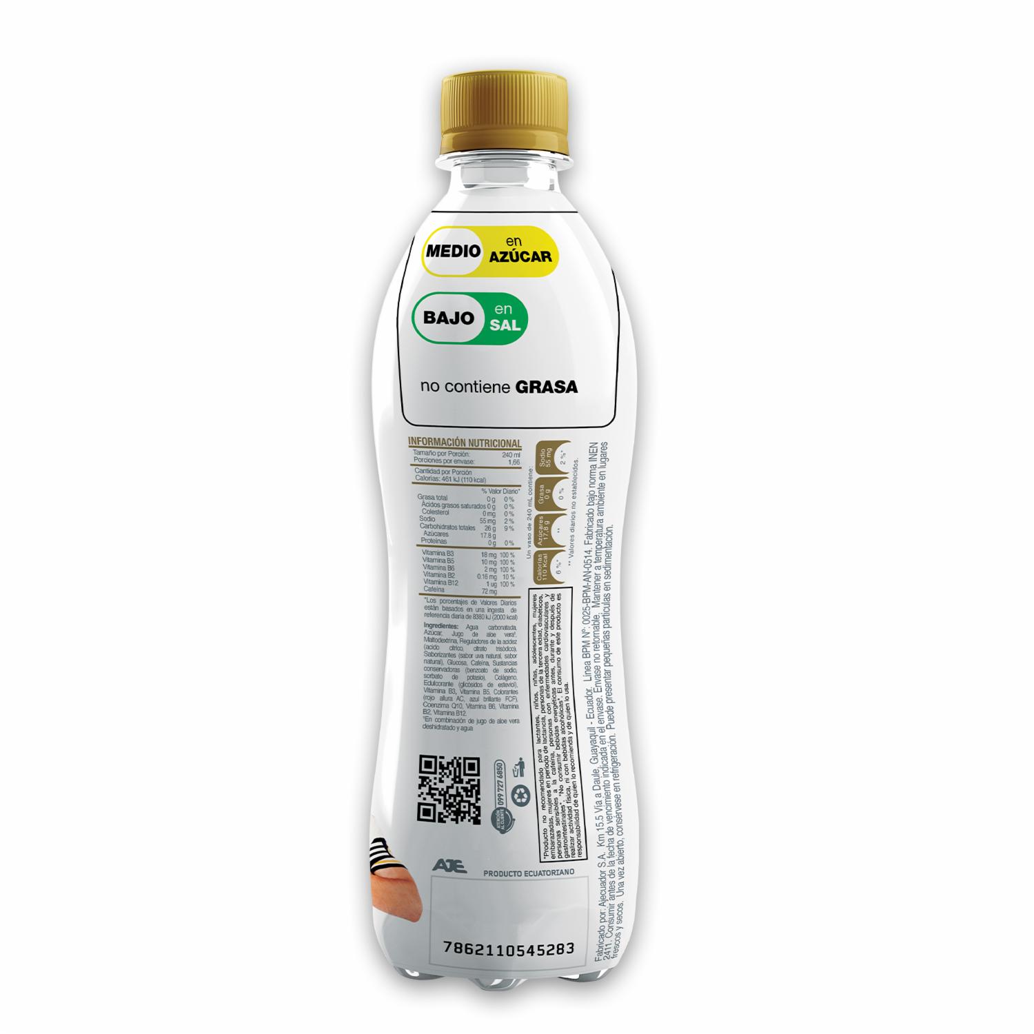 Bebida Energizante Aloe Vera + Colágeno + Q10 Sabor Uva VOLT 400 Ml