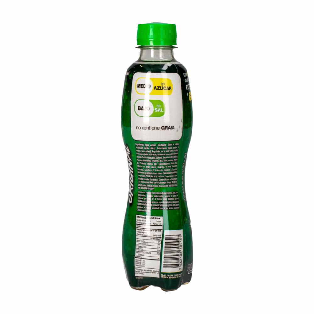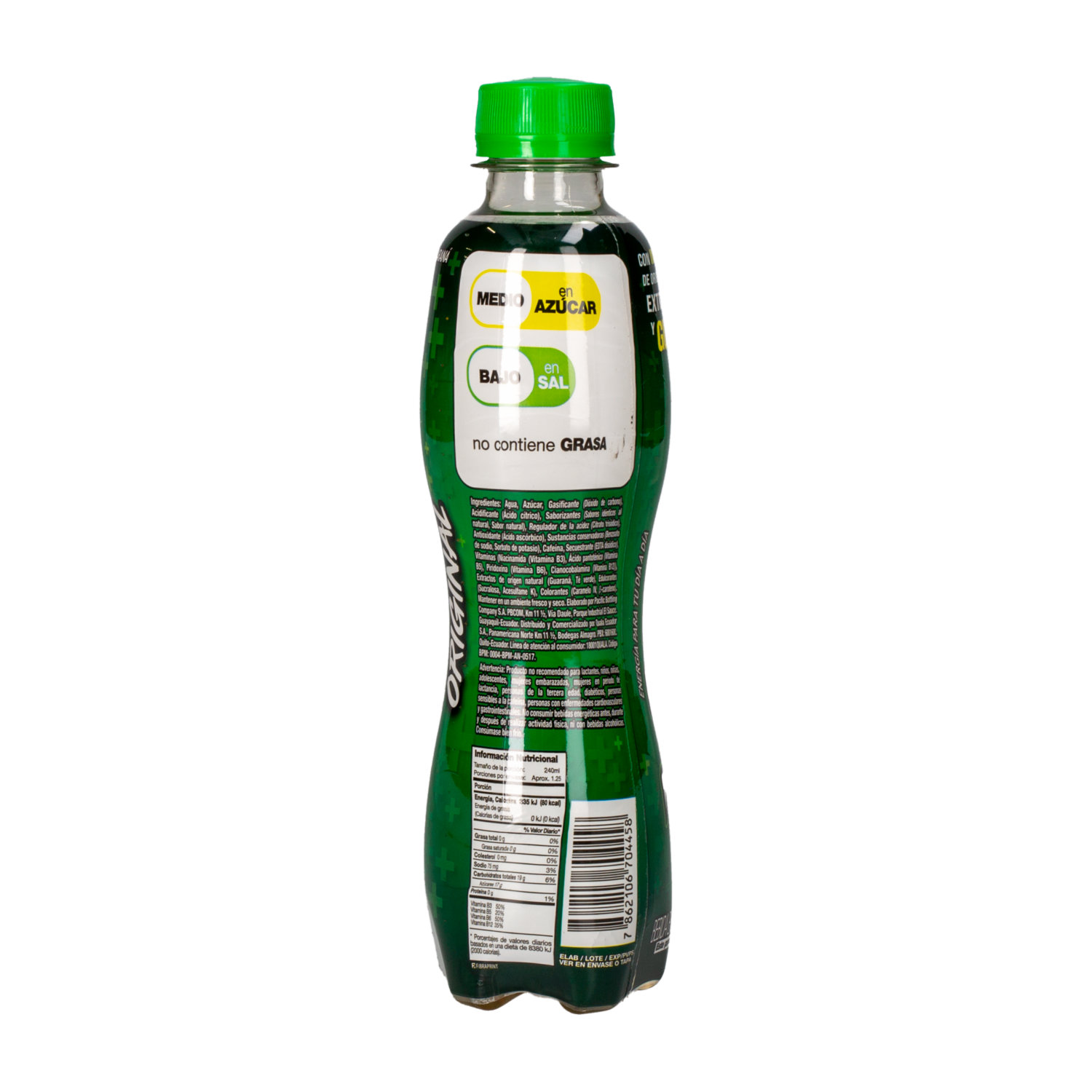bebida energizante que contiene los ingredientes naturales: extracto de guaraná y extracto de té, además cuenta con un delicioso y refrescante sabor