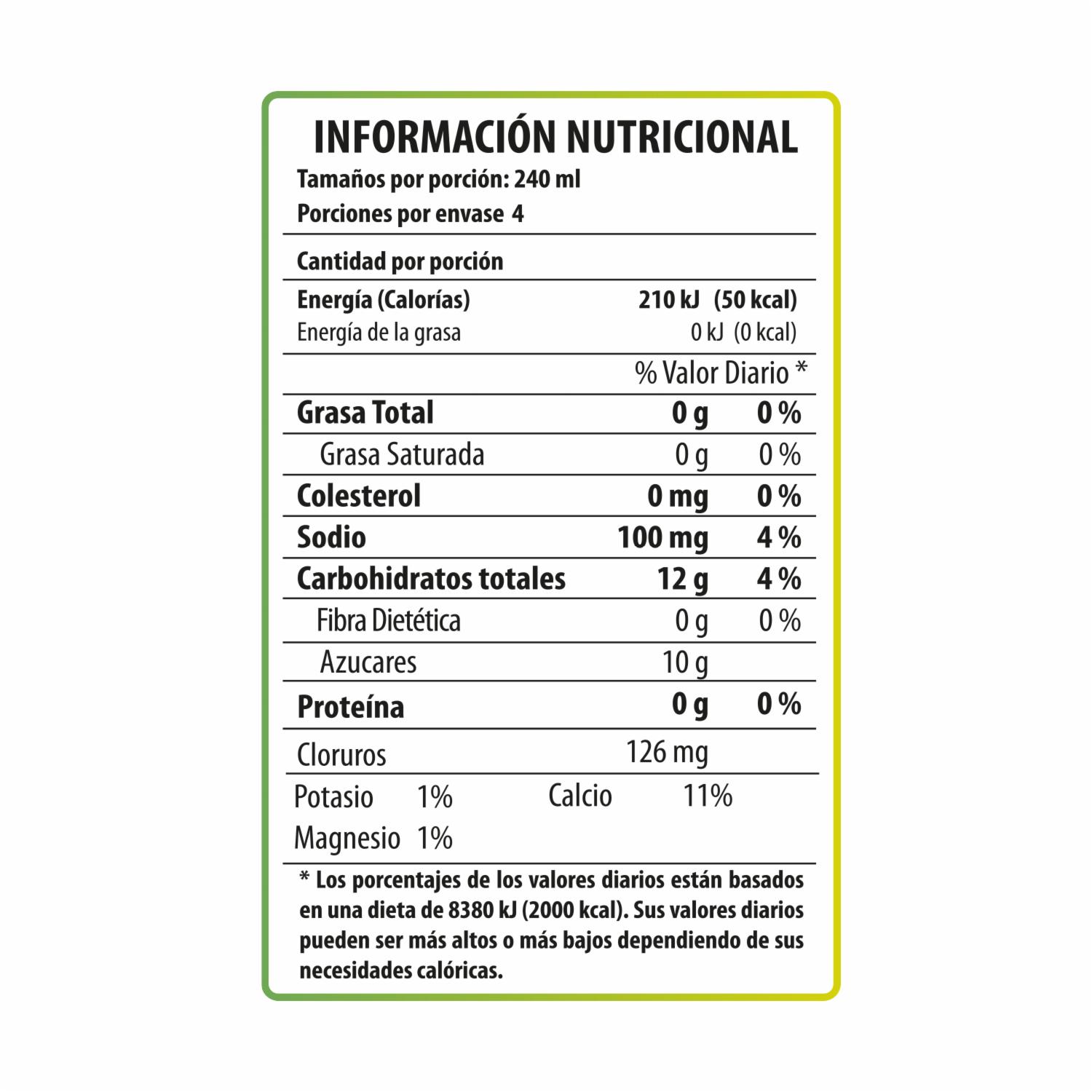 Bebida hidratante con sabor a Apple ice. Contiene potasio, calcio, sodio y magnesio
