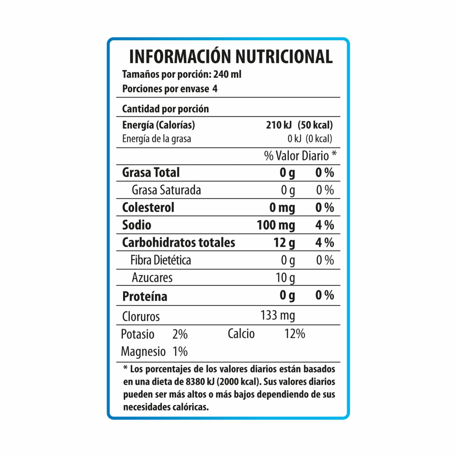Bebida hidratante con sabor a Blueberry. Contiene potasio, calcio, sodio y magnesio