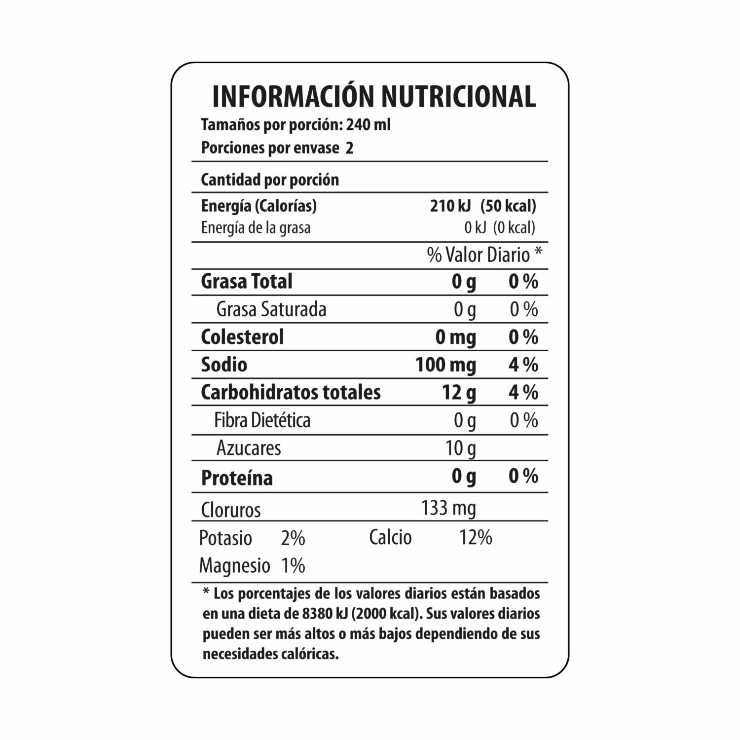 Contiene potasio, calcio, sodio y magnesio